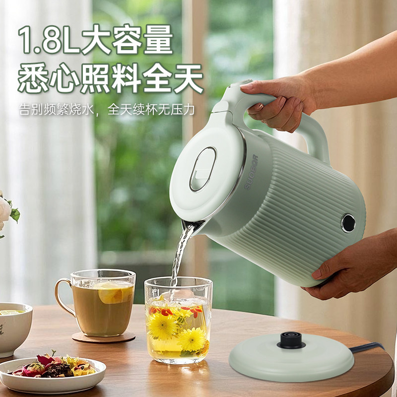 苏泊保温烧水壶大容量304不锈钢1500W热水壶电热水高颜值静音双层