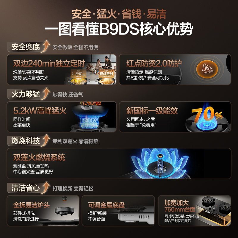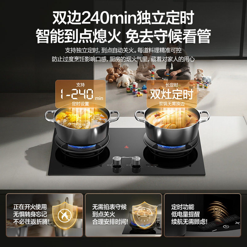 [新品首发]万和定时燃气灶天然气煤气灶家用双灶B9DS灶台式炉灶G7