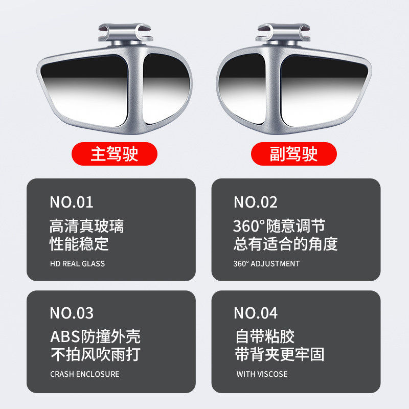 汽车前后轮盲区镜360度车头后视镜小圆镜多功能盲点倒车辅助神器