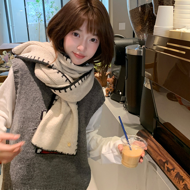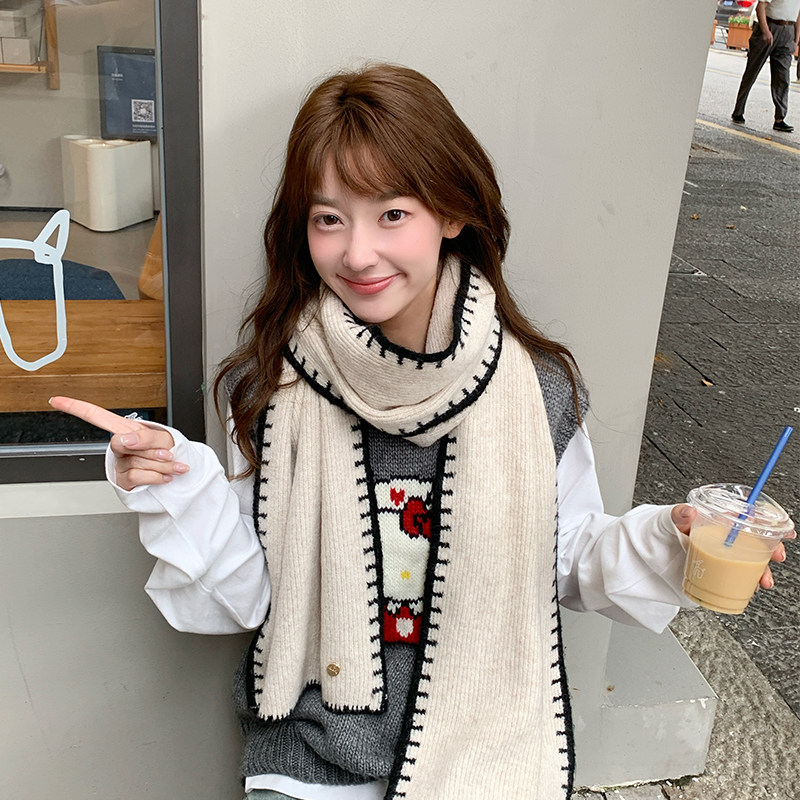 韩系锁边针织围巾女秋冬季2025新款高级感巨柔软保暖加厚护颈围脖