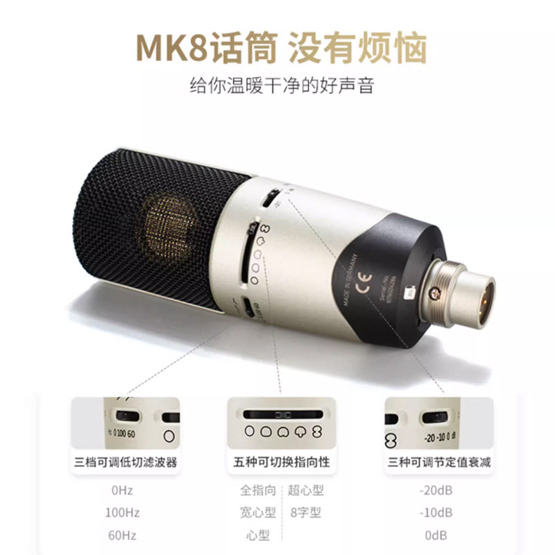 SENNHEISER/森海塞尔 MK8专业录音主播直播K歌双振膜麦克风真电容
