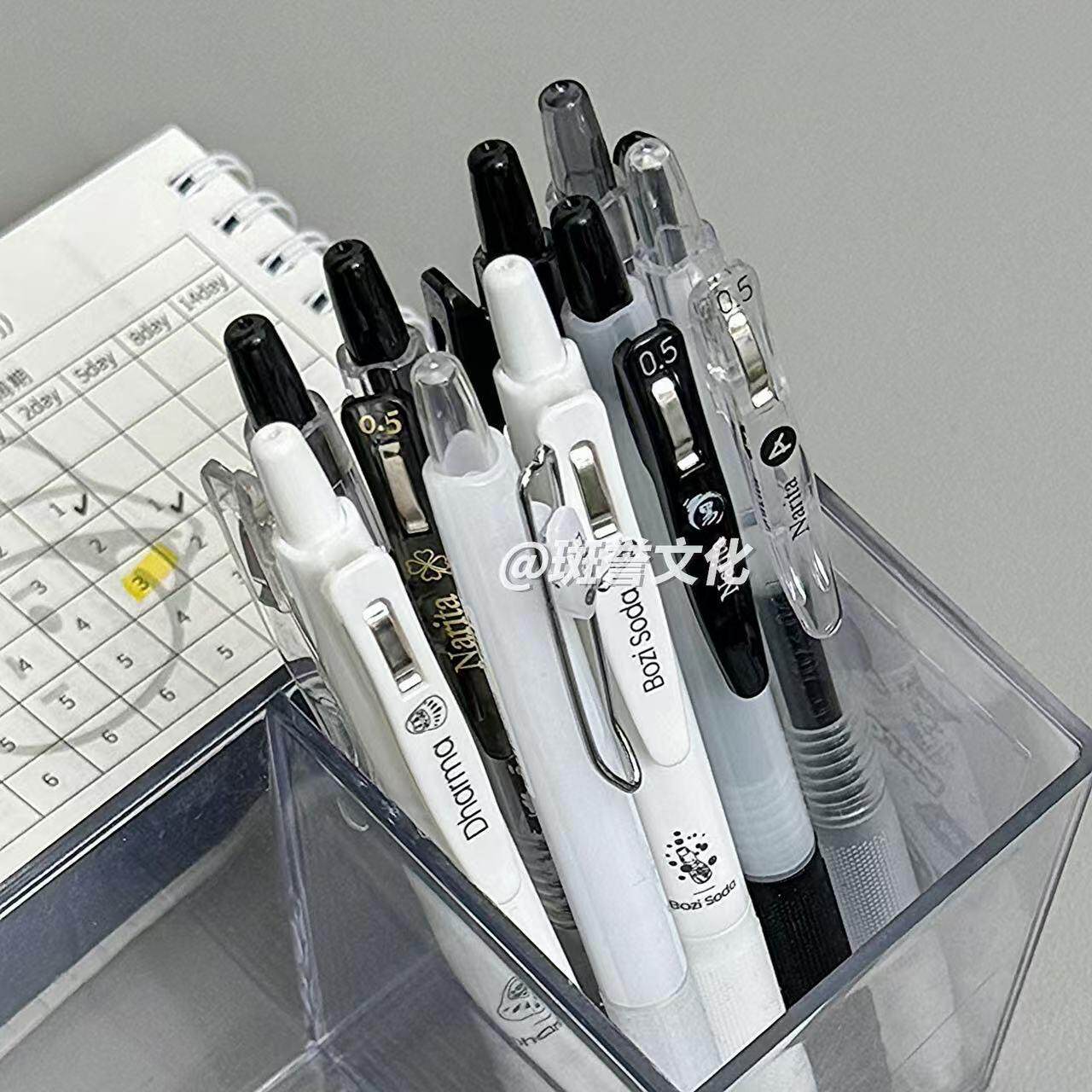 国风桶装刷题笔速干顺滑黑笔高颜值按动中性笔ST0.5黑色笔芯水性圆珠笔小学生专用考试笔非按斤卖碳素签字笔
