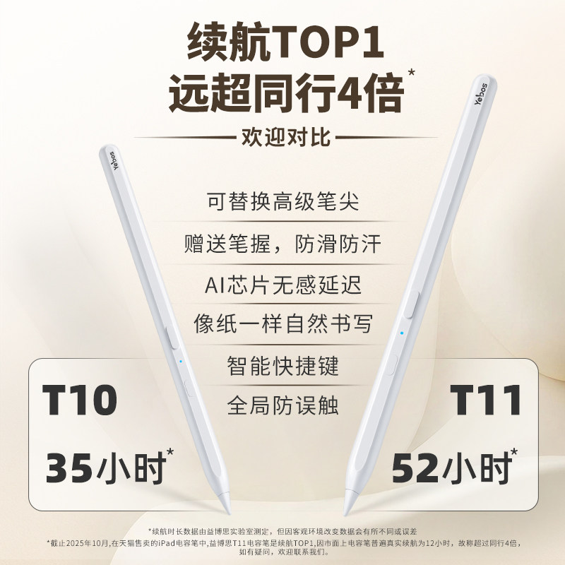 【政府补贴15%】益博思T11长续航ipad电容笔适用苹果applepencil平板触控笔air7pro一代手写笔触屏pencil平替