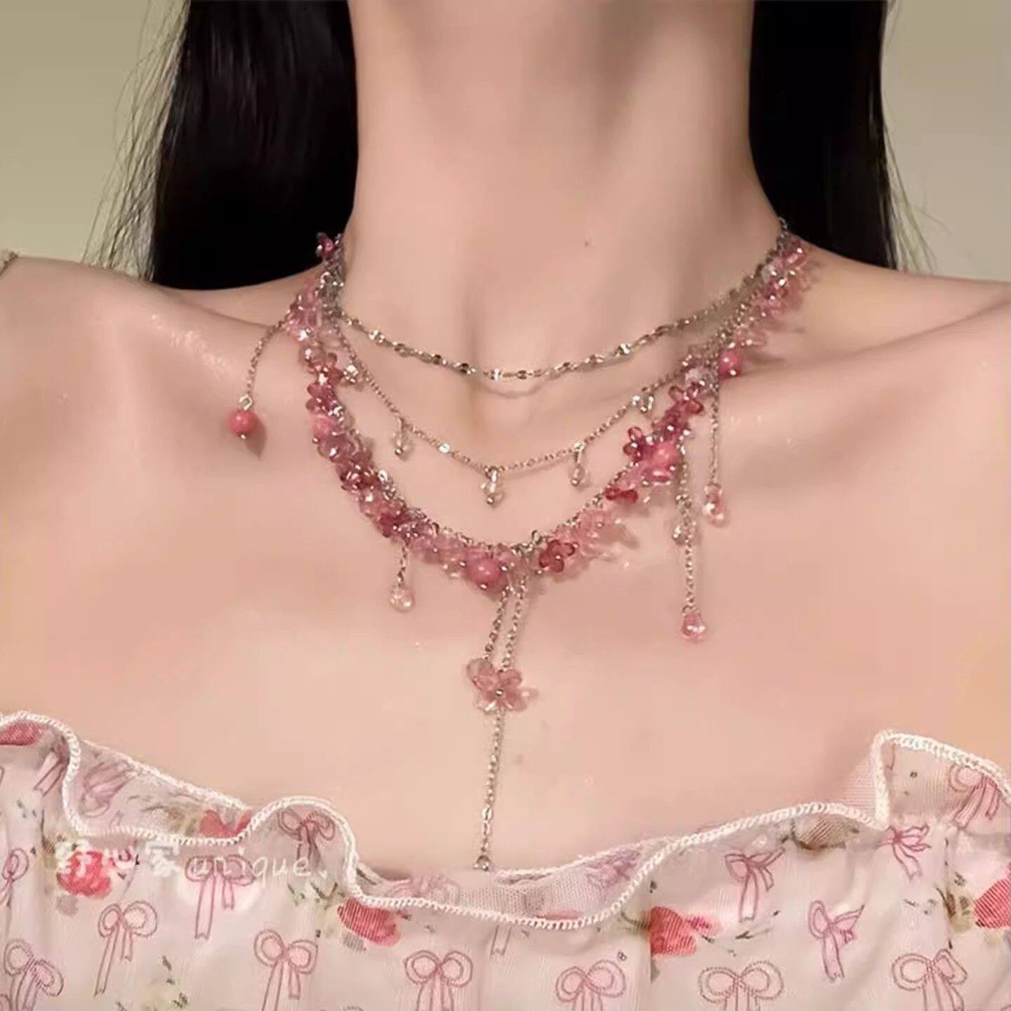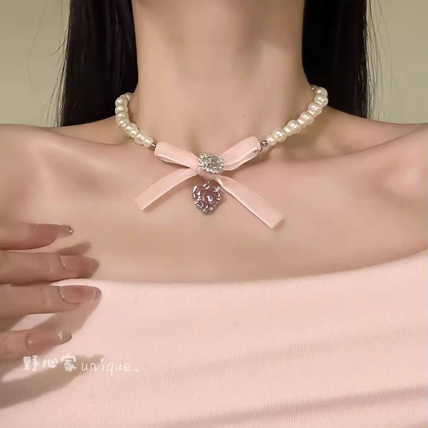 野心家原创序曲甜美气质蝴蝶结锆石项链设计感choker颈链花朵串珠