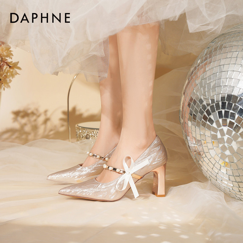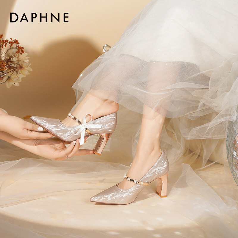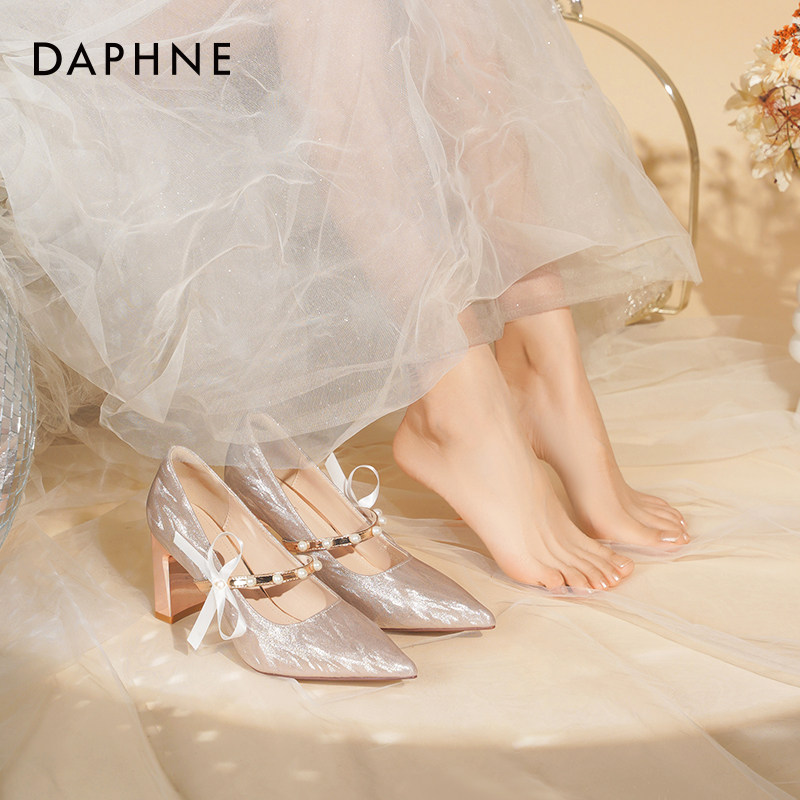 达芙妮高跟鞋女婚鞋2026新款粗跟玛丽珍单鞋婚纱秀禾水晶新娘鞋子