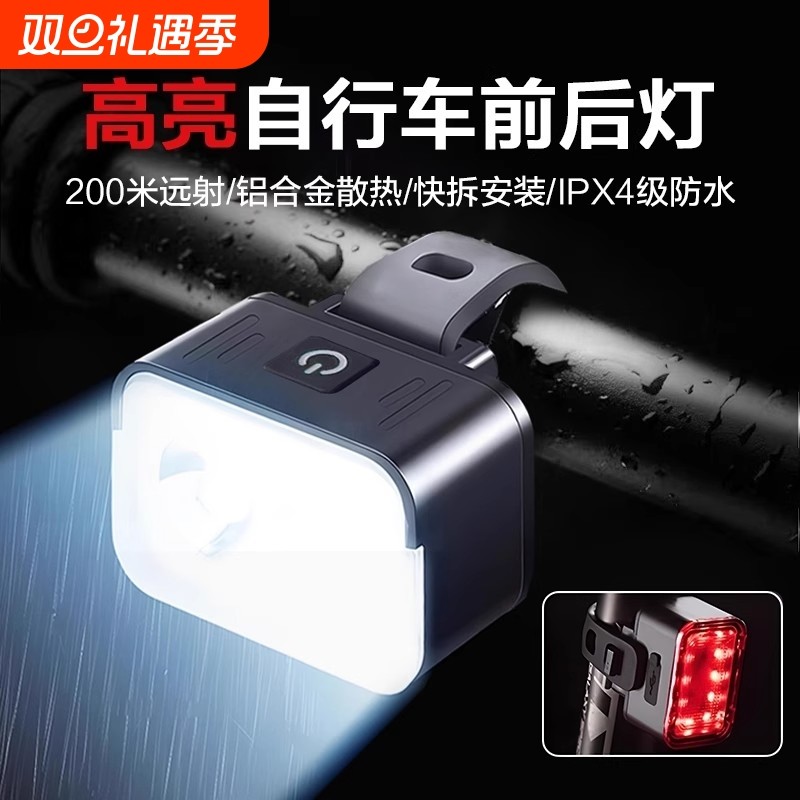 超亮自行车灯前灯手电筒强光夜骑尾灯充电山地公路单车骑行装备