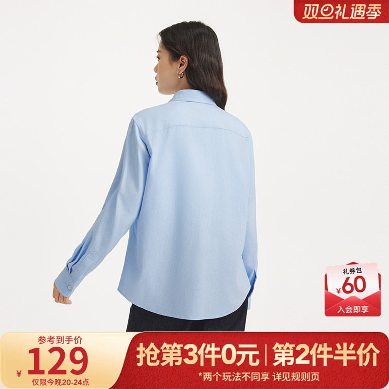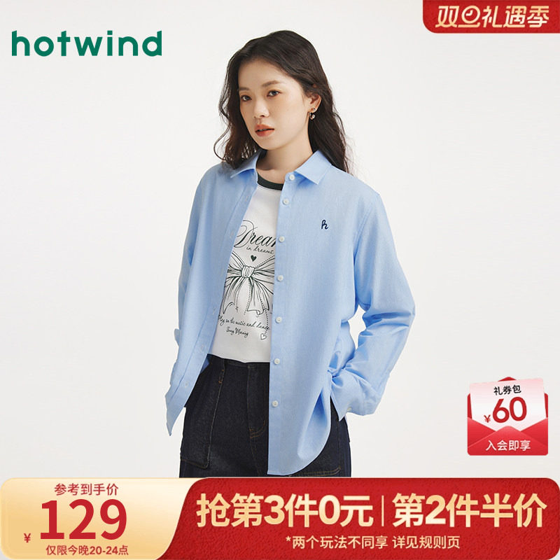 热风2025年秋季新款女士刺绣通勤衬衫宽松休闲方领衬衣修身百搭
