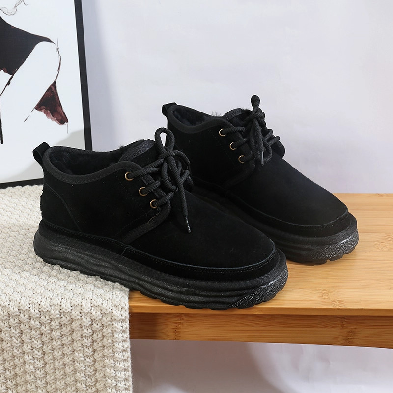 miu家厚底雪地靴女冬季真皮短靴羊毛侧拉链增高厚底加绒毛毛棉鞋
