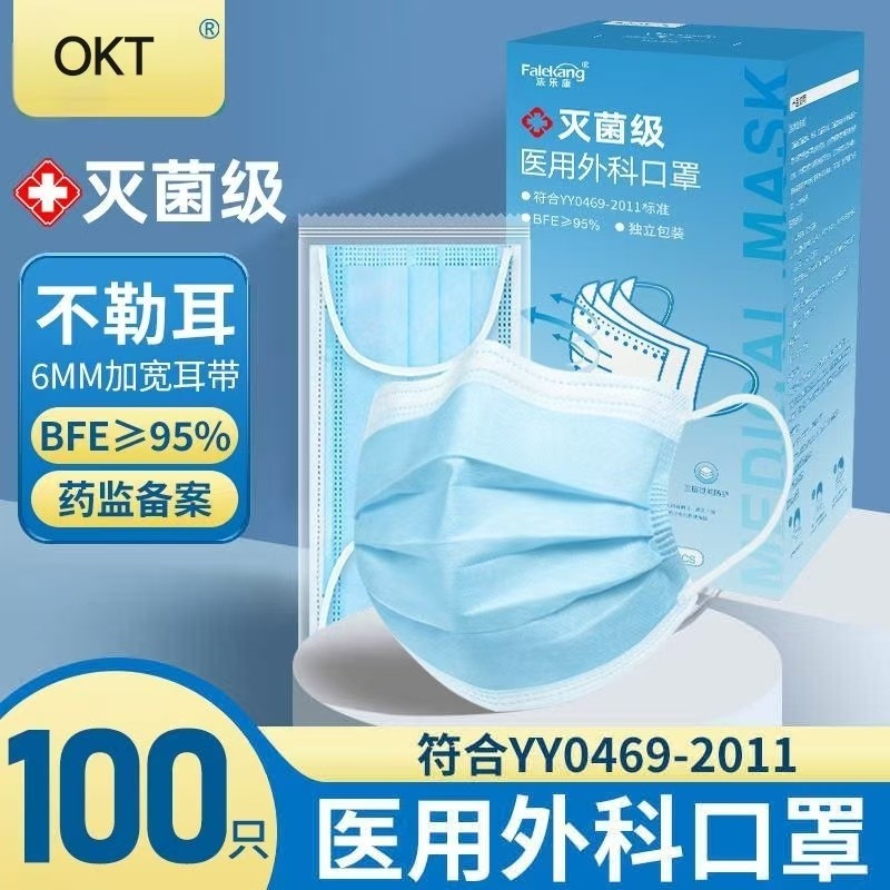 100只医用外科口罩一次性医疗三层官方正品旗舰店灭菌级独立包装