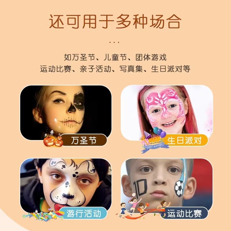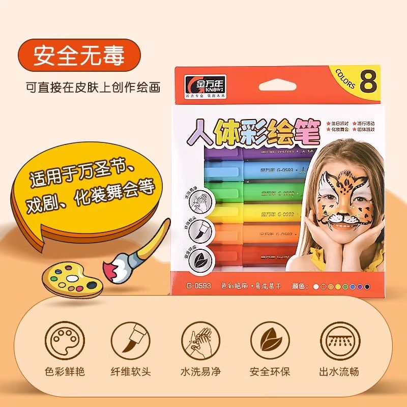 人体彩绘笔幼儿园舞台妆彩妆专用笔儿童脸部面部可水洗直主播pk画脸笔画画笔无毒美甲身体涂鸦笔色彩水彩笔
