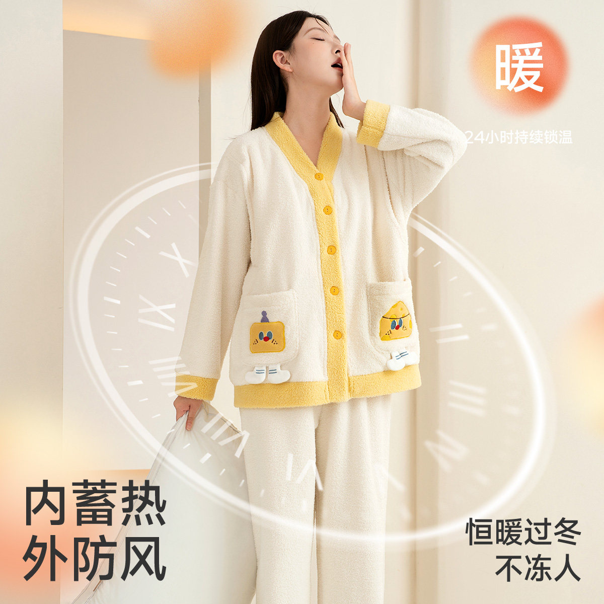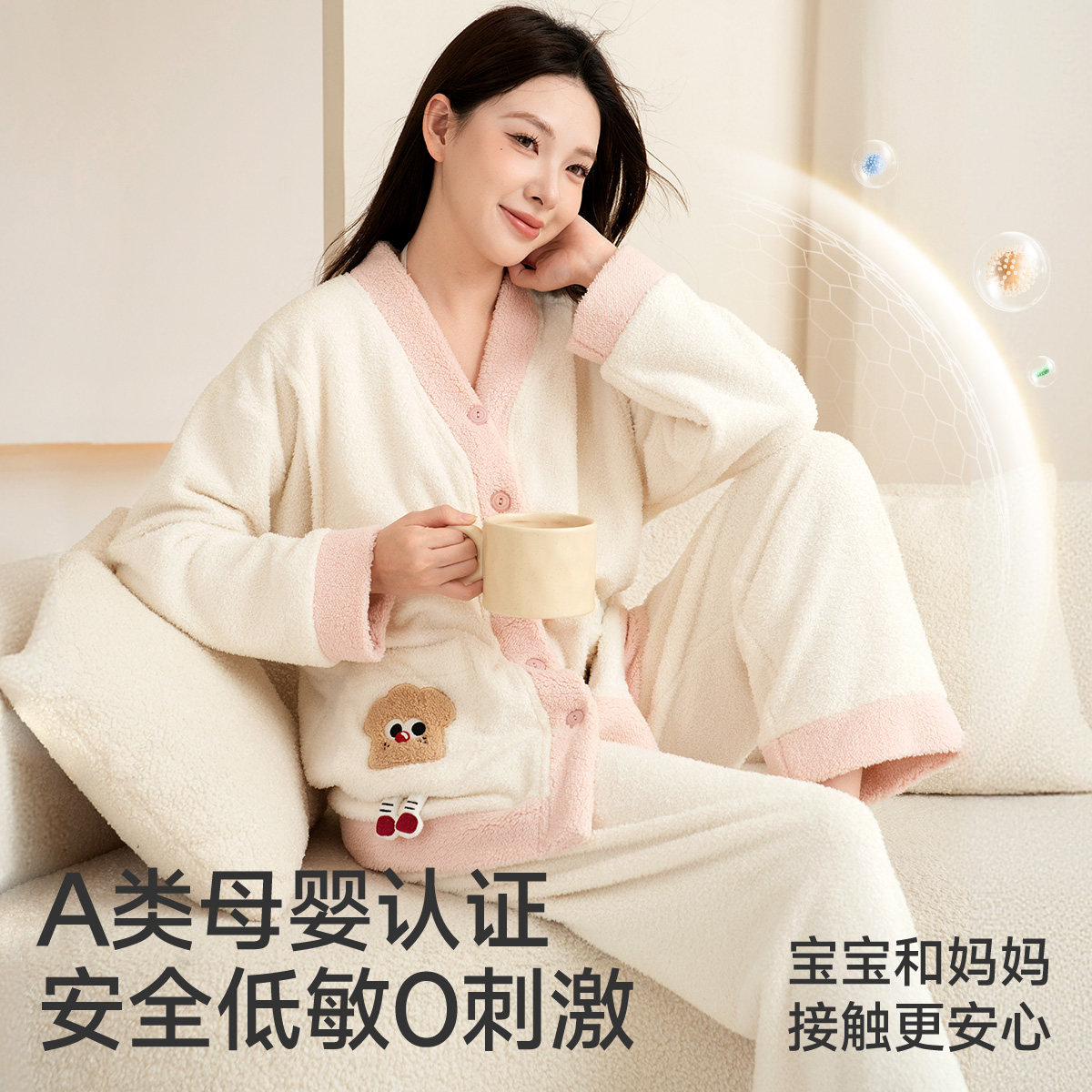 婧麒月子服冬季加绒孕妇睡衣保暖加厚待产产妇哺乳喂奶家居服套装