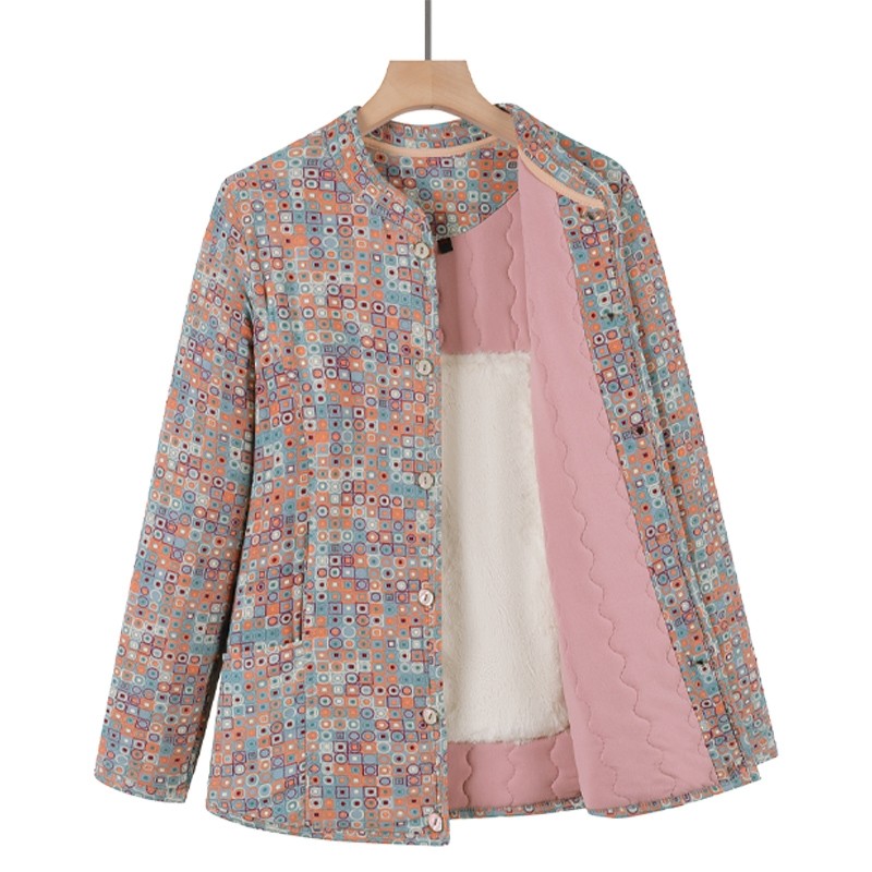 妈妈秋冬季加绒外套女中老年人大码宽松翻领棉衣三层加厚棉服上衣