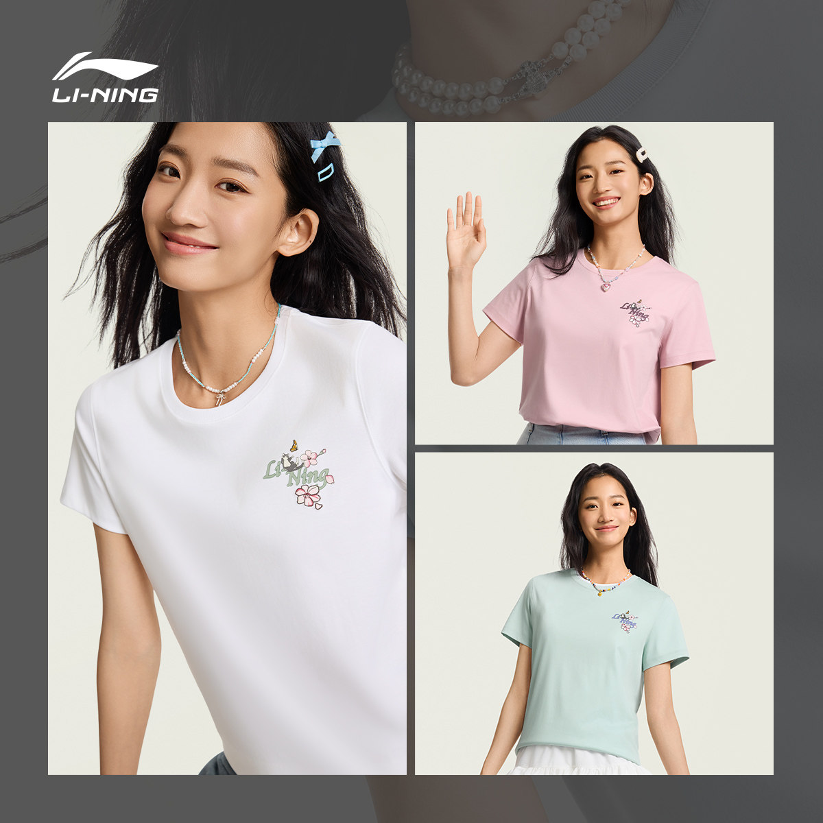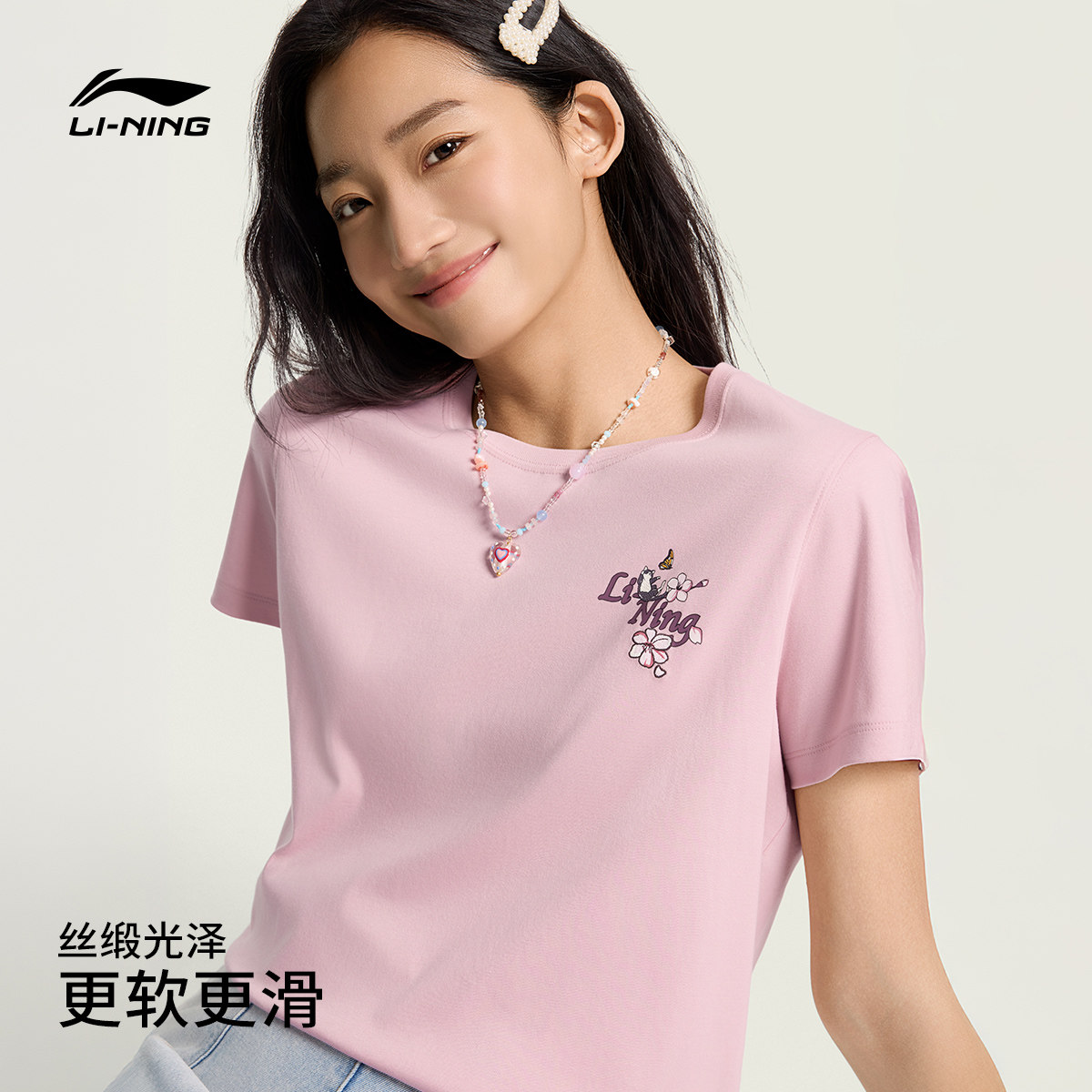 李宁多彩短袖女士春夏2026新款女装冰丝上衣刺绣T恤女透气运动服