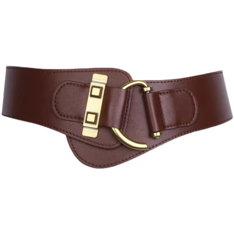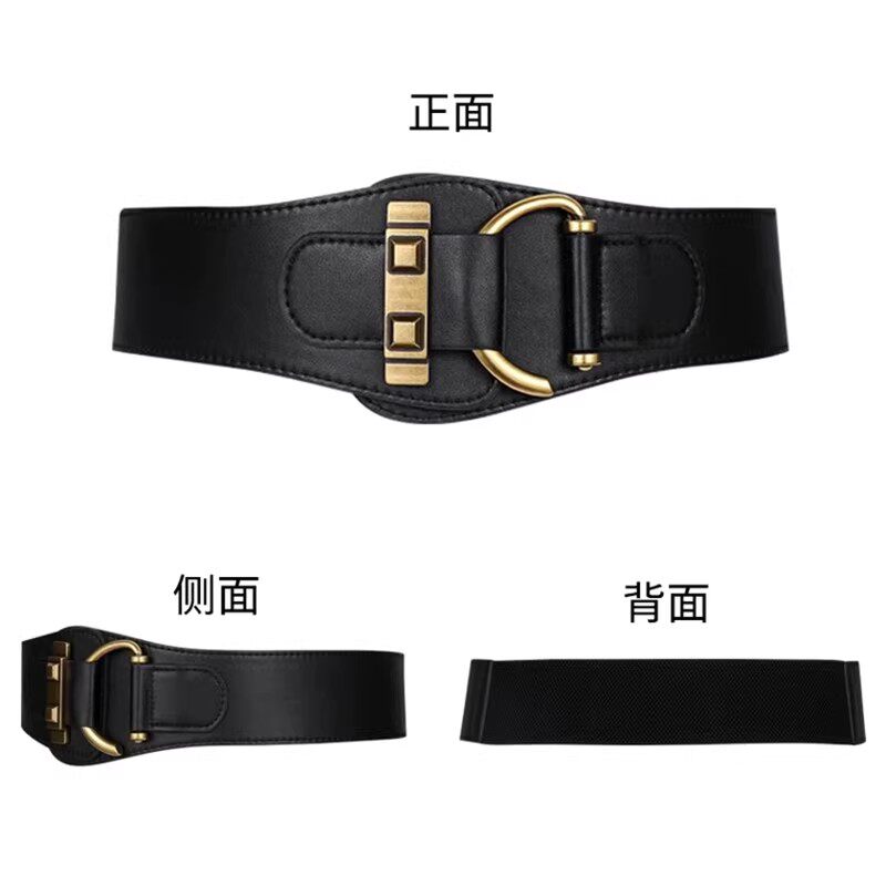 真皮宽腰带女士装饰ins大衣配裙子复古百搭松紧弹力收束腰封黑色