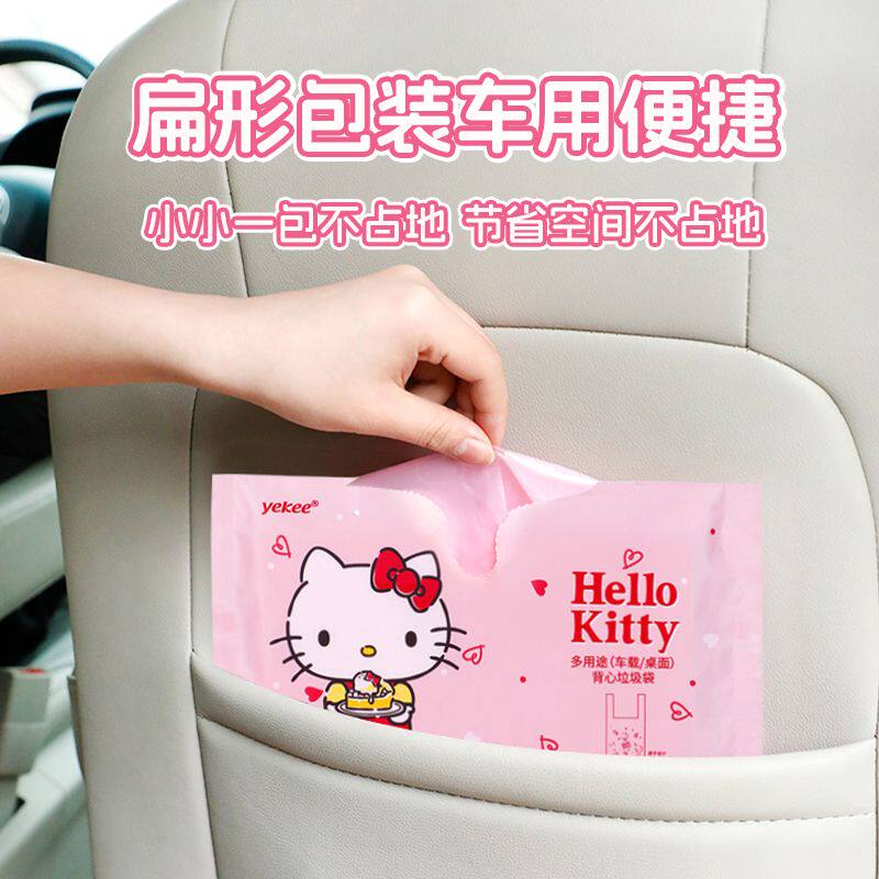 宜洁HelloKitty垃圾袋小号背心式桌面加厚手提车用塑料袋车内收纳