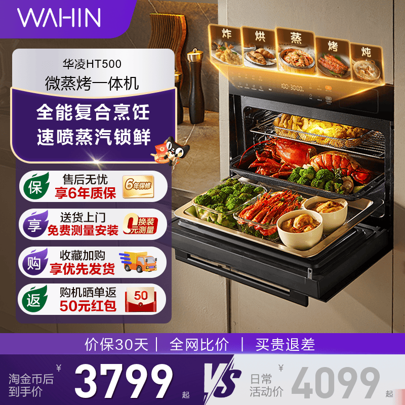 美的华凌微蒸烤一体机嵌入式家用电蒸烤箱微蒸烤炸炖五合一HT500
