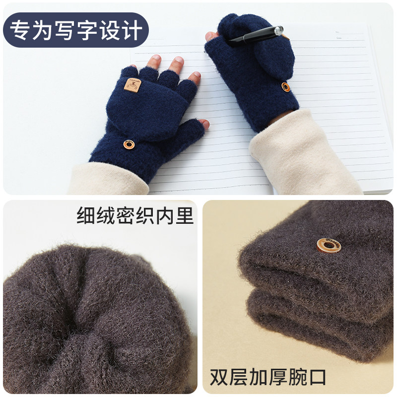 手套儿童分指冬季保暖五指翻盖小学生半指写作业可触屏黑色暖手