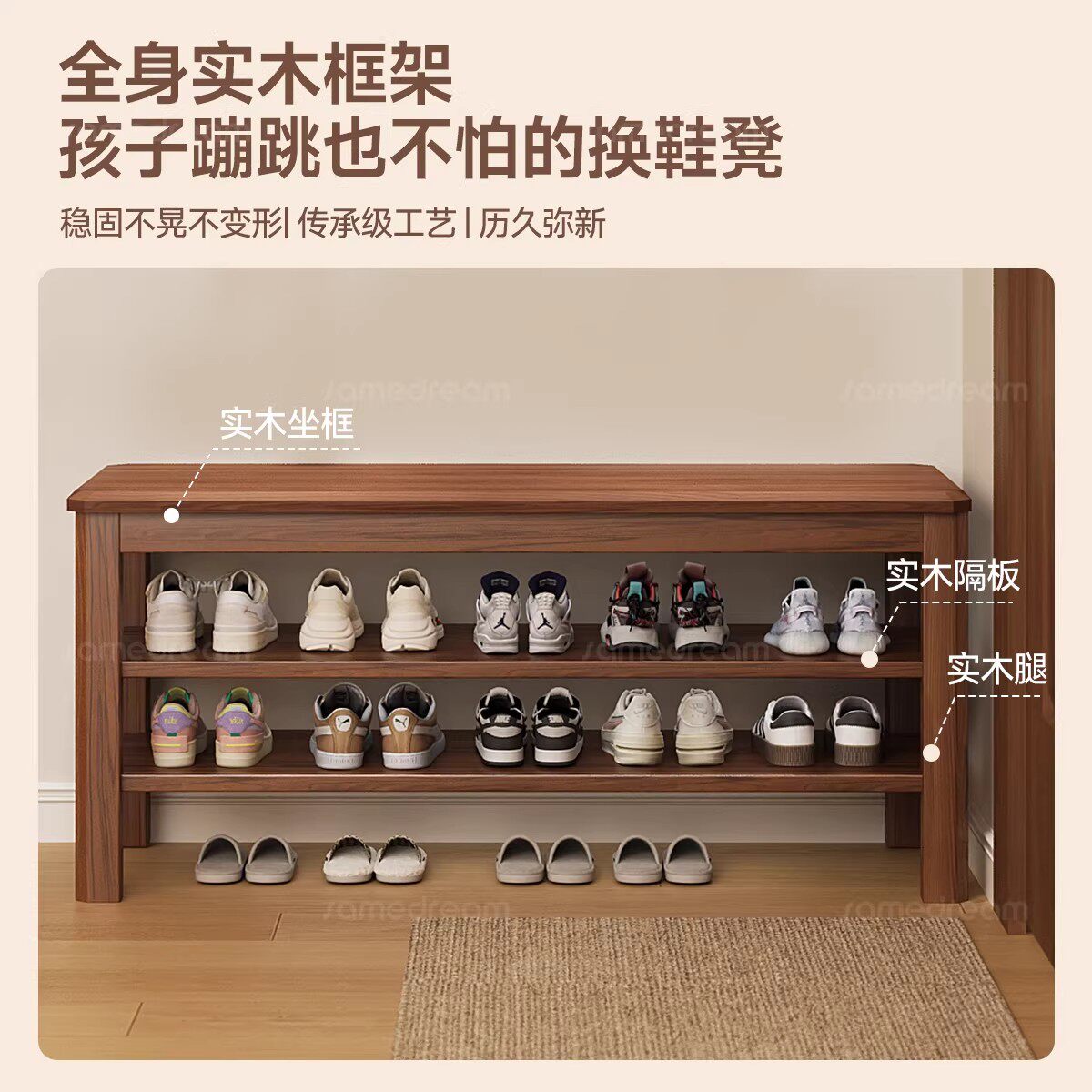 全实木换鞋凳家用入户门口玄关简约鞋柜可坐穿鞋凳子多层收纳鞋架