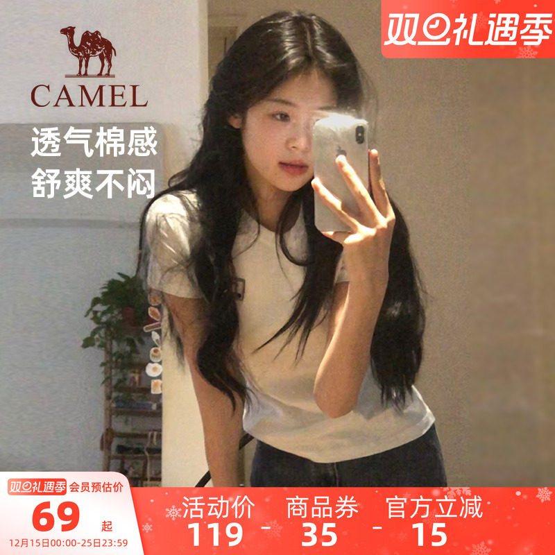 【夏日】骆驼瑜伽服圆领T恤女2025夏季透气短袖休闲运动显瘦上衣