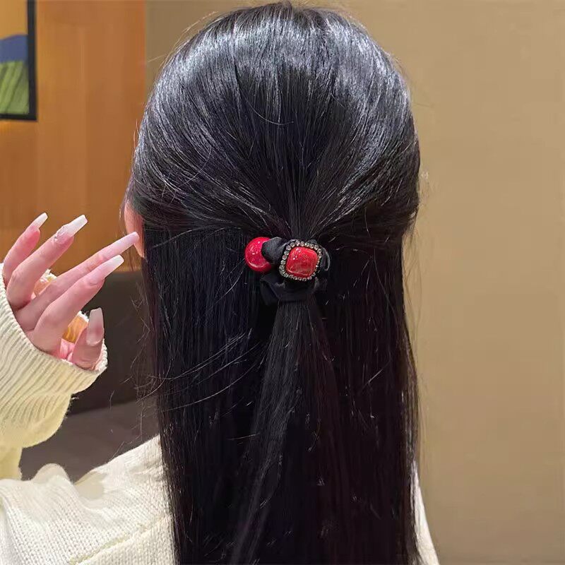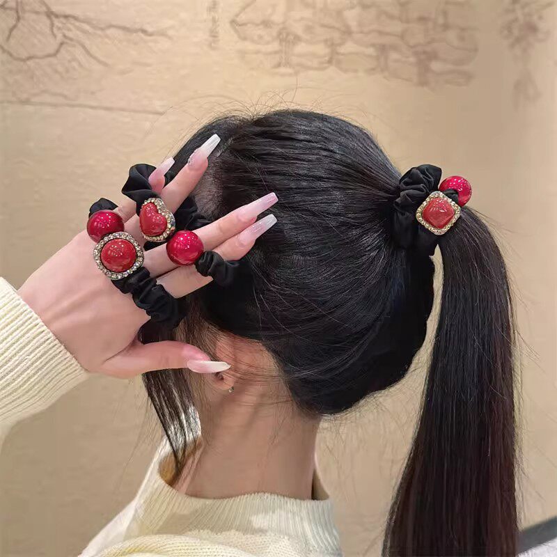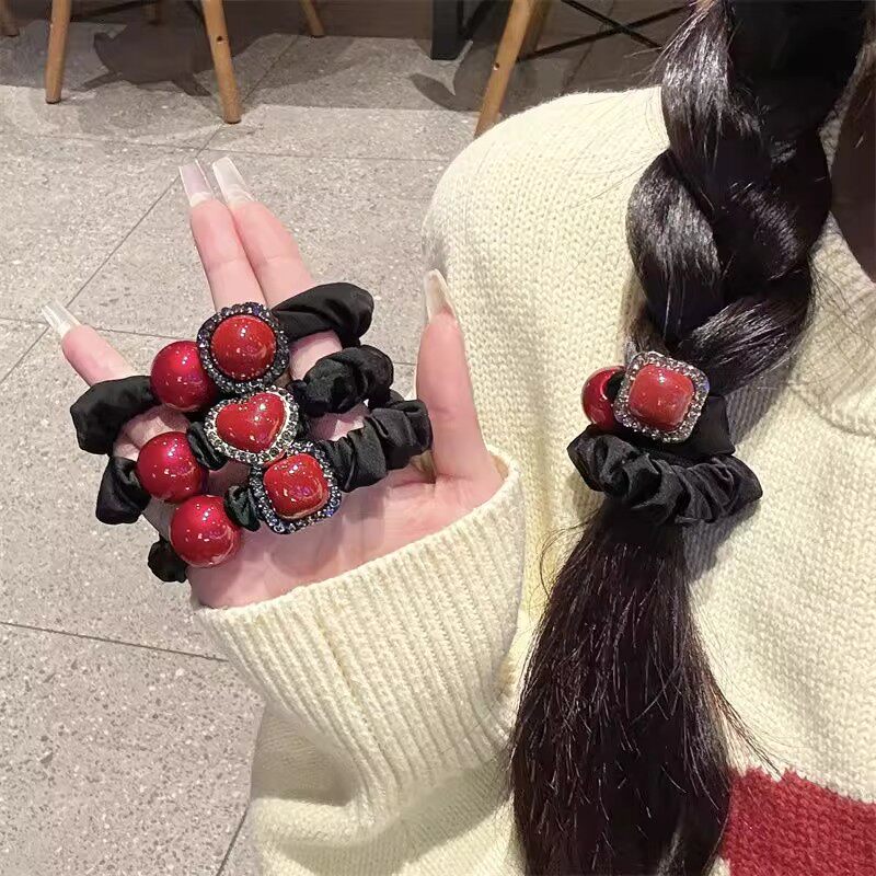 红色爆款珍珠闪钻小肠发圈精致爱心方块扎发头绳甜美少女马尾发绳