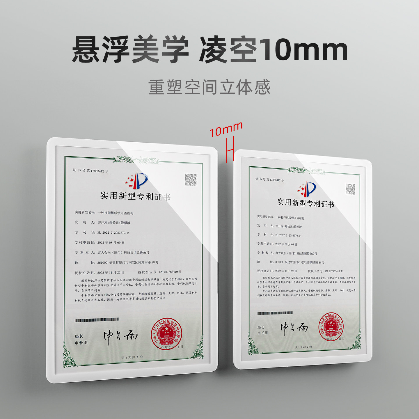 亚克力悬浮相框专利证书展示框教师简介奖状荣誉挂墙照片墙展示墙