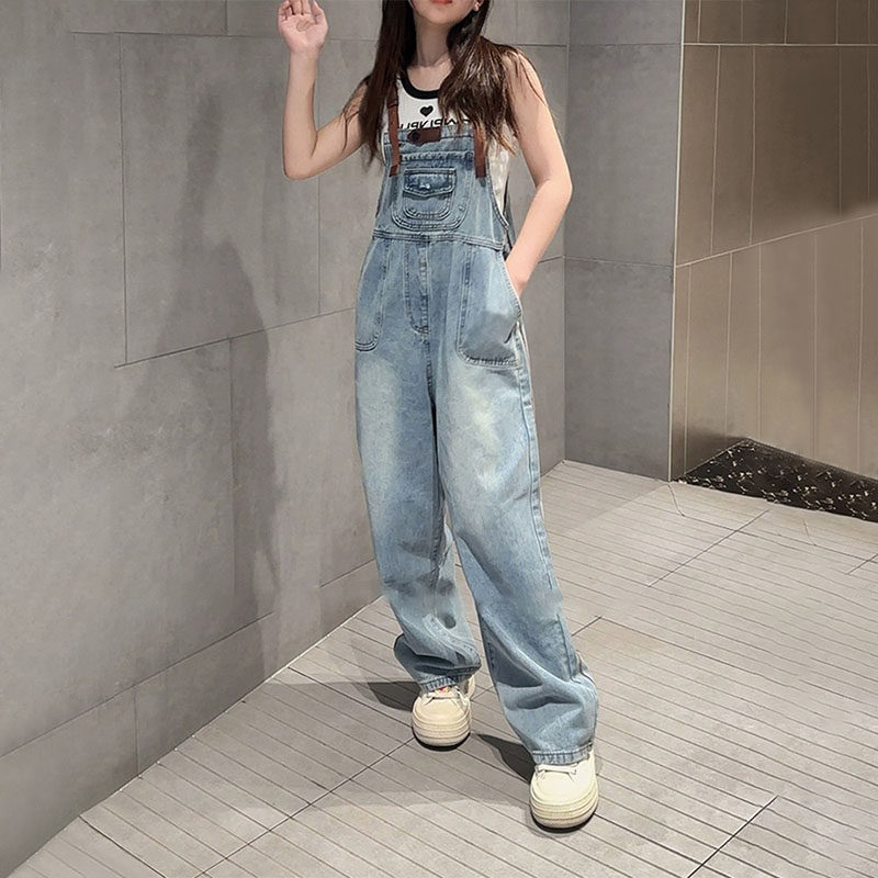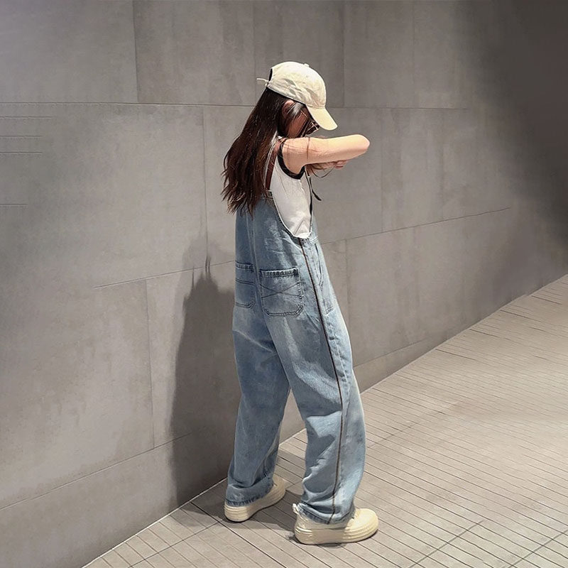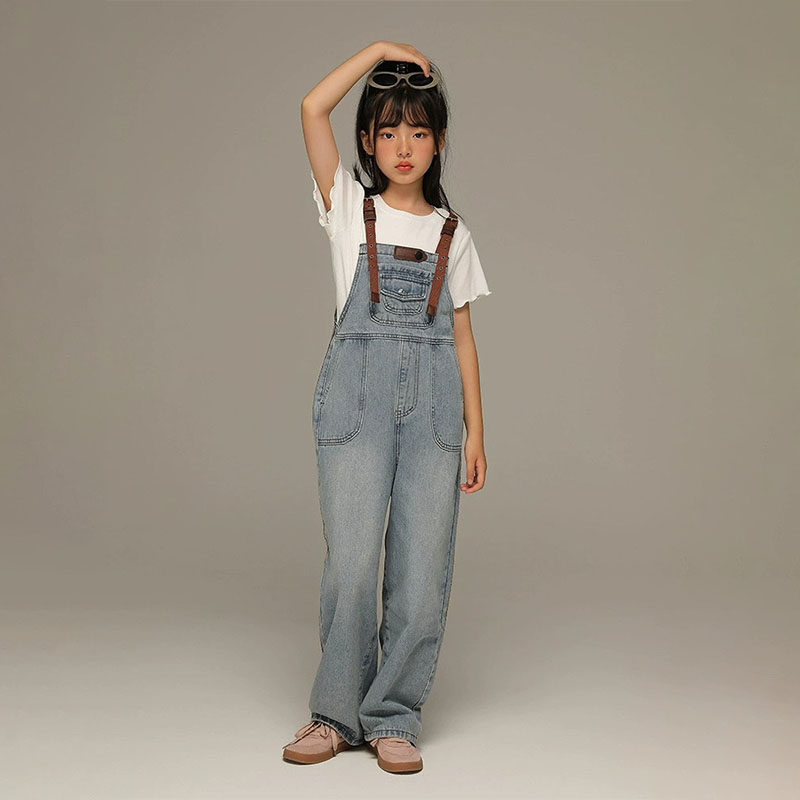 春秋季洋气女童背带裤韩版宽松儿童新款吊带裤子中大童时髦牛仔裤