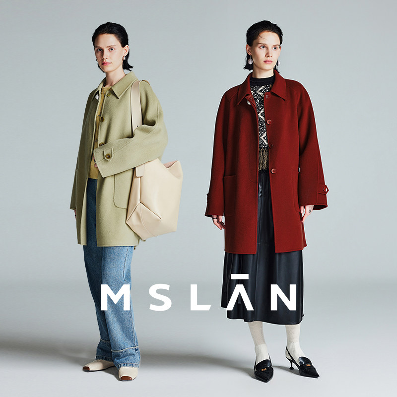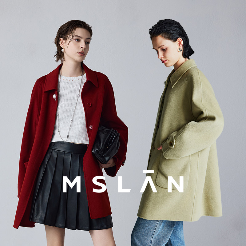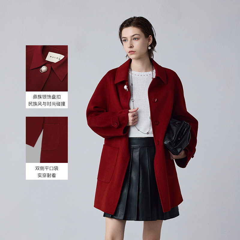 MSLAN新年战袍气质羊绒红色落肩双面呢大衣小个子中长款羊毛外套