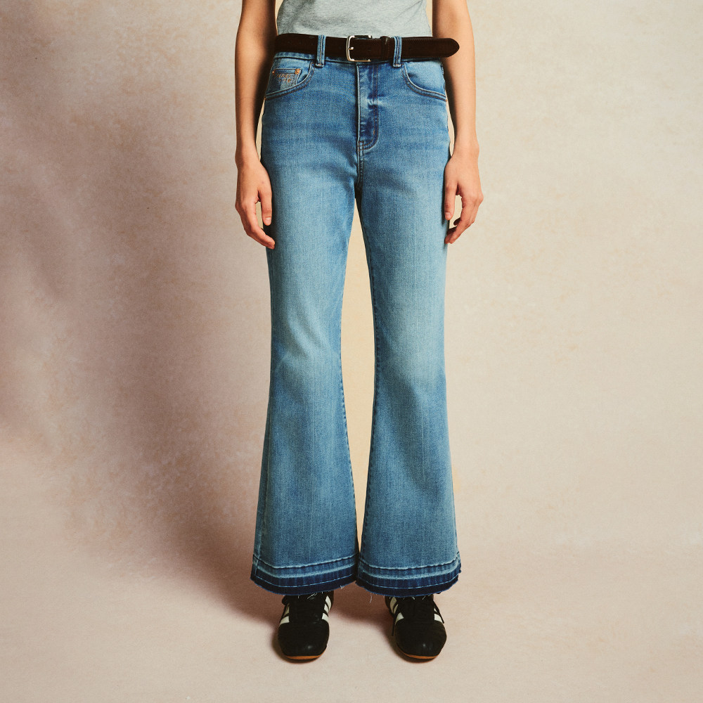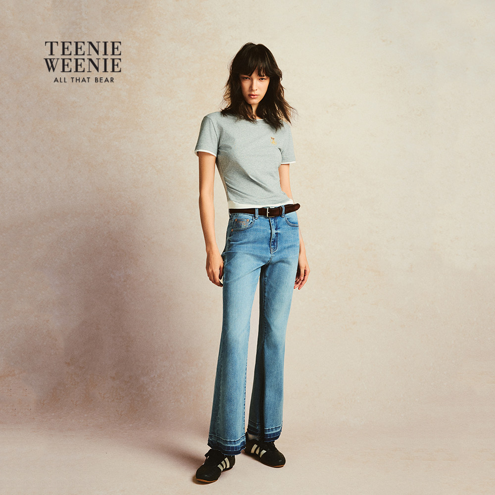 TeenieWeenie小熊女装牛仔裤2025秋季新款时髦复古气质通勤喇叭裤