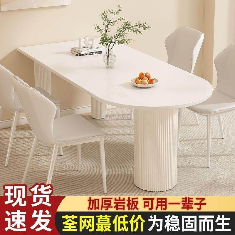 岩板餐桌家用小户型轻奢简约长方形餐厅岛台大理石饭桌子椅子组合