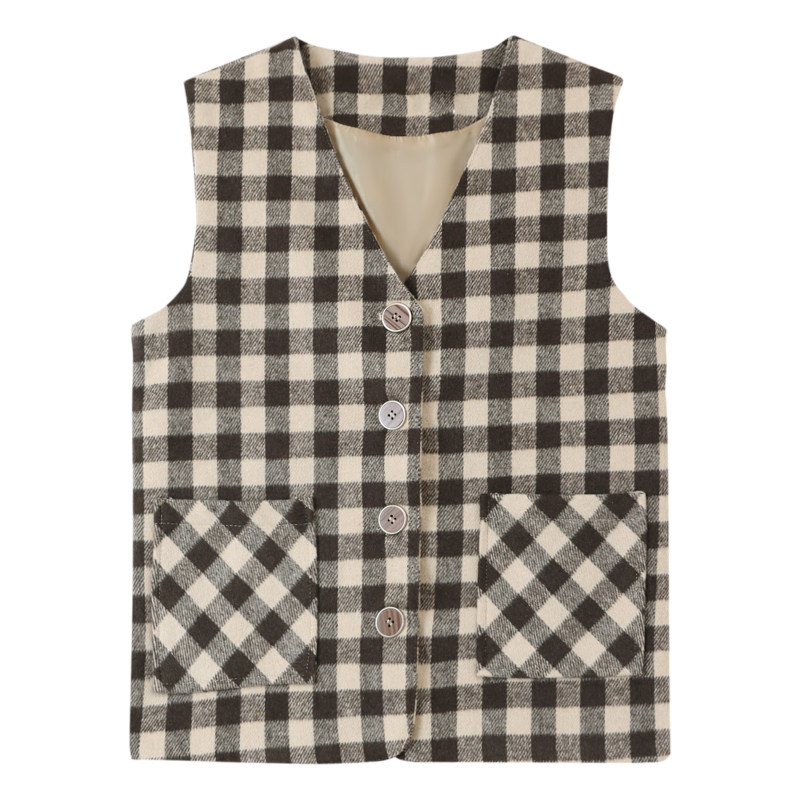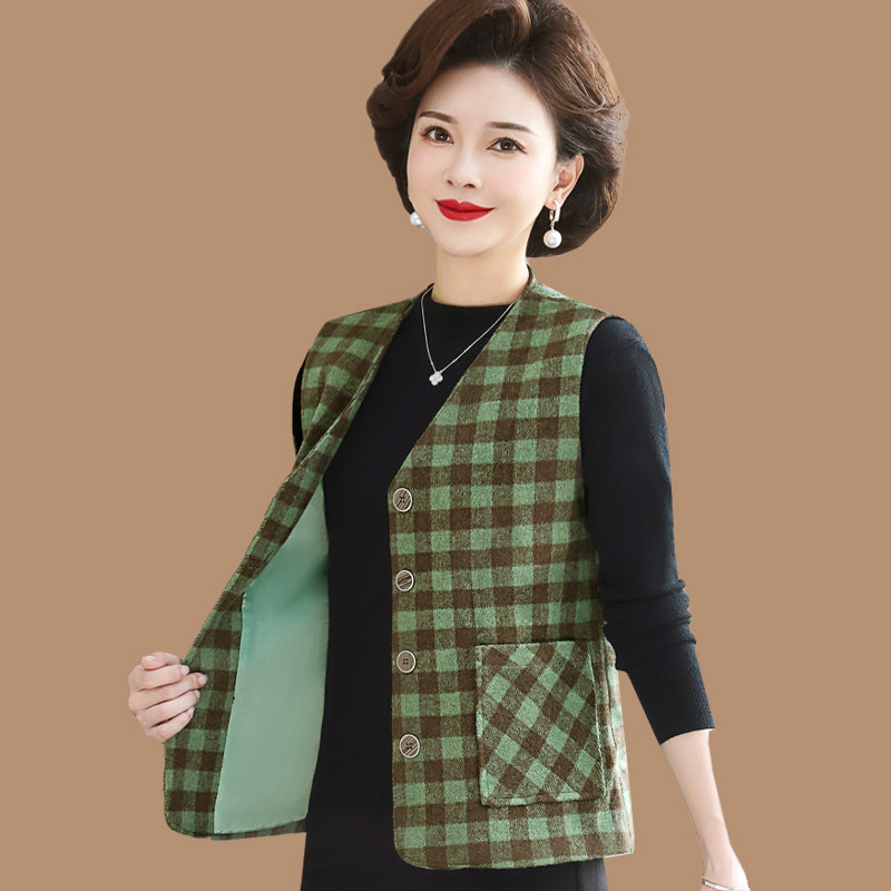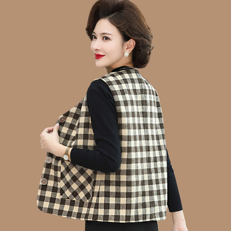 雅鹿妈妈装春秋新款格子马甲女士中年奶奶马夹中老年人背心外套