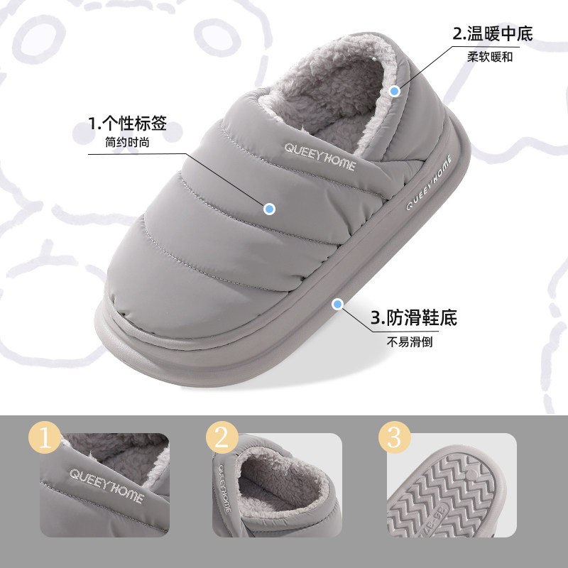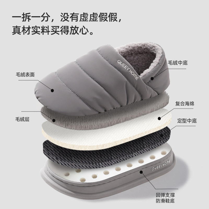 红豆踩屎感棉拖鞋女士秋冬季室内家居2025新款毛绒保暖情侣棉拖男