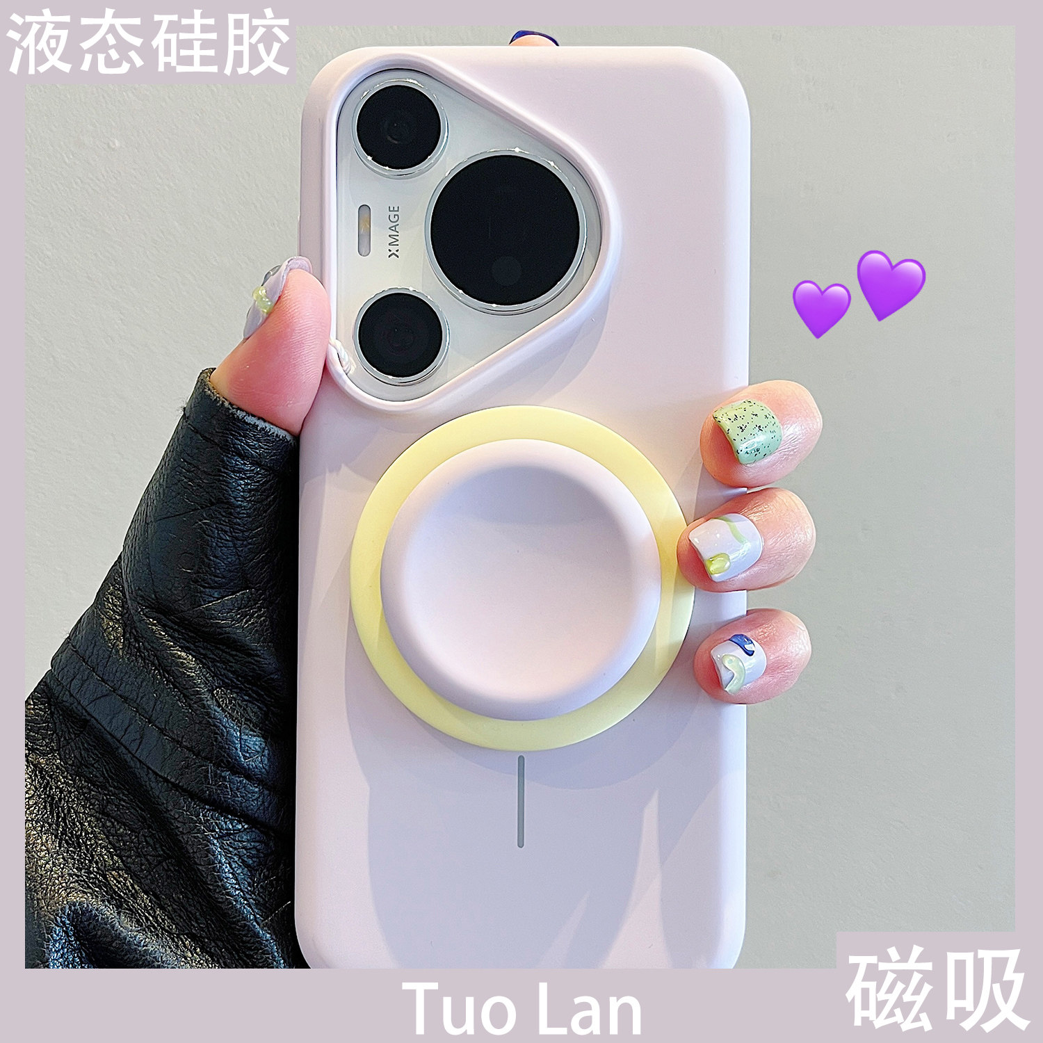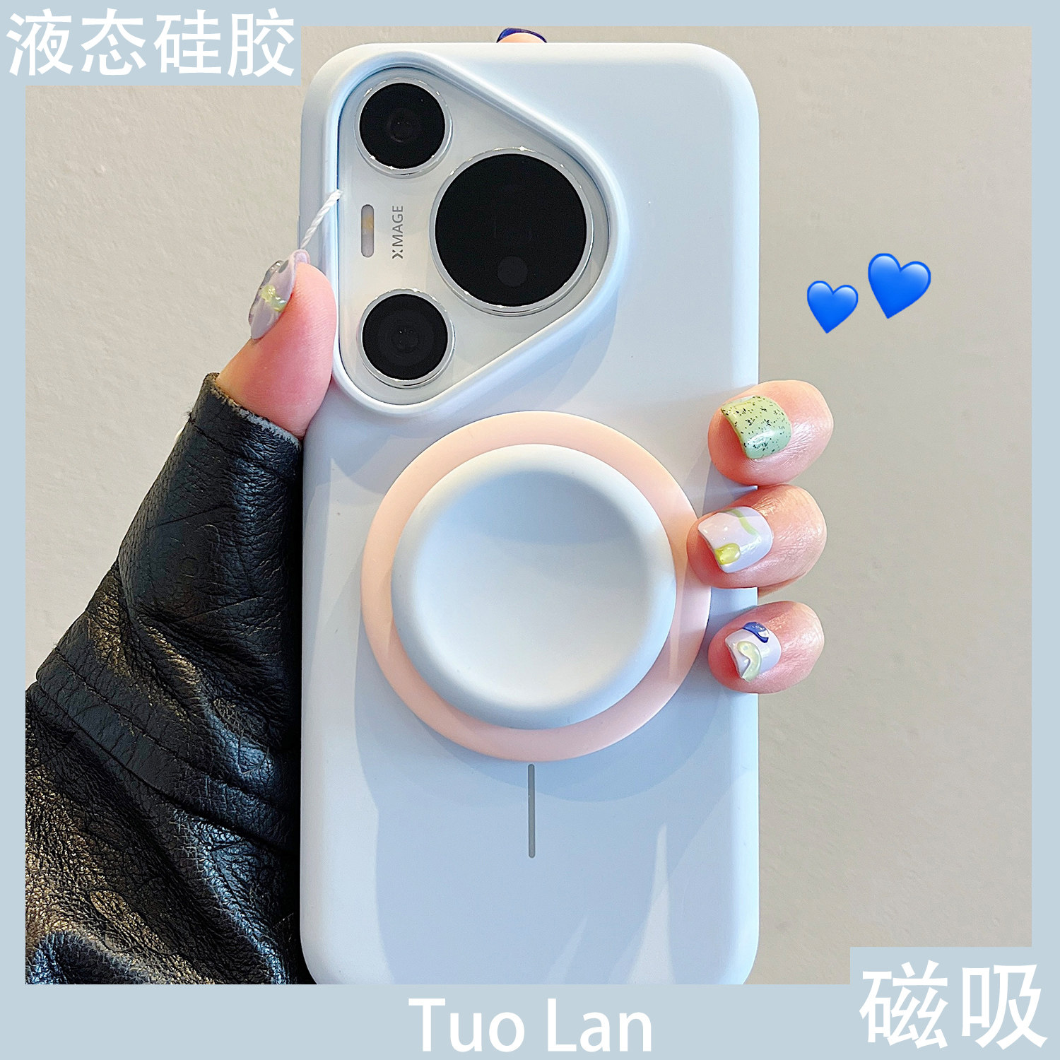拓岚 古董白适用华为pura80ultra新款手机壳高级感液态硅胶Pura70pro情侣原创撞色磁吸支架mate80/70/60pro女