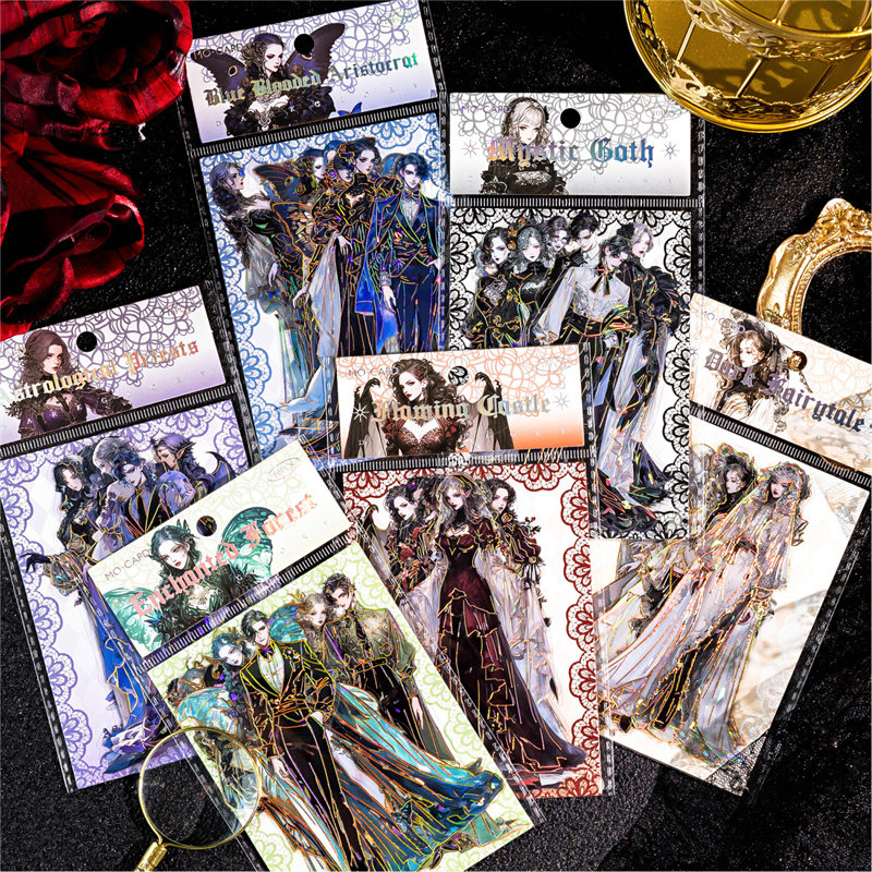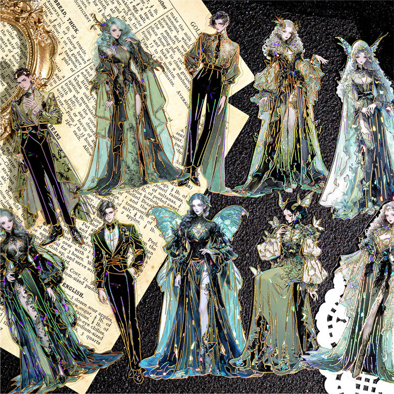 M|暗黑荣耀贴纸包 冰晶立体镭射金人物巴洛克风pet手账痛包贴画