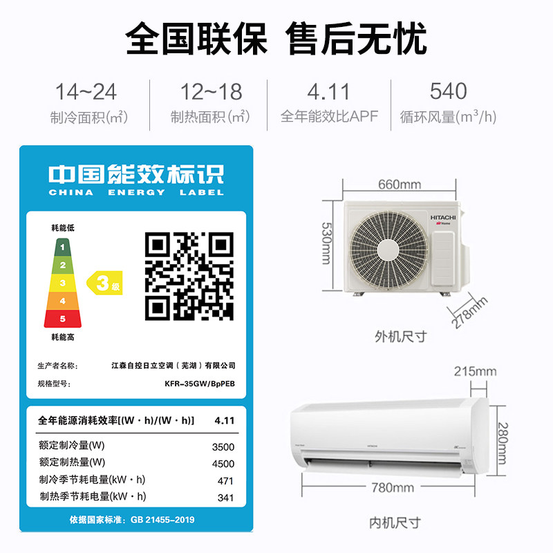 【清仓】日立空调1.5匹新三级抗菌防霉全直流变频冷暖挂机PE
