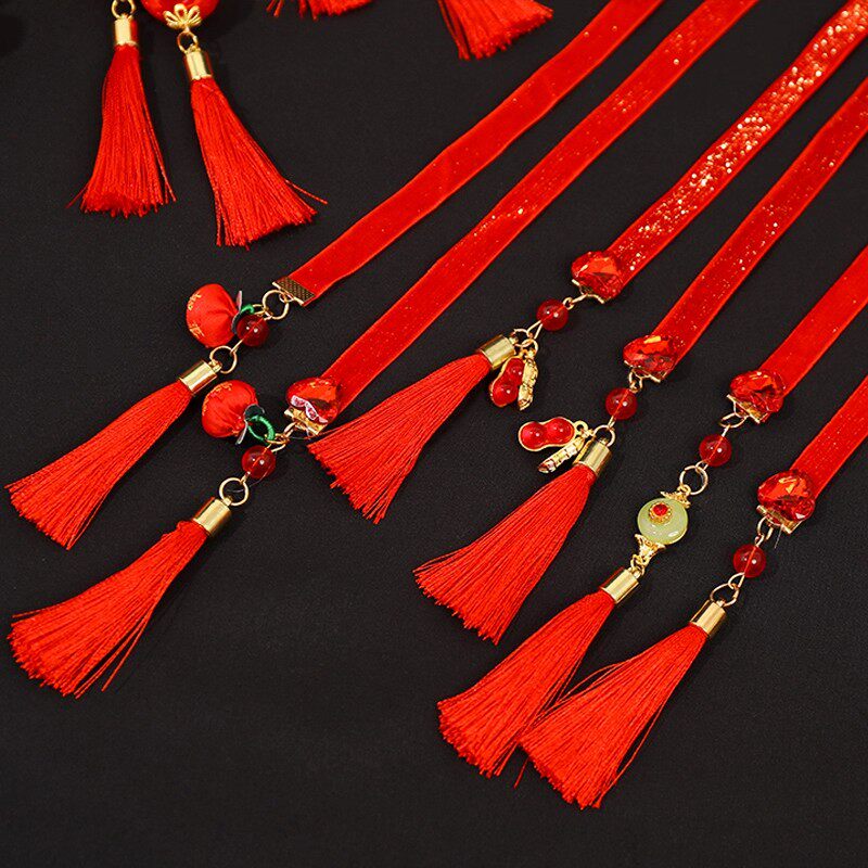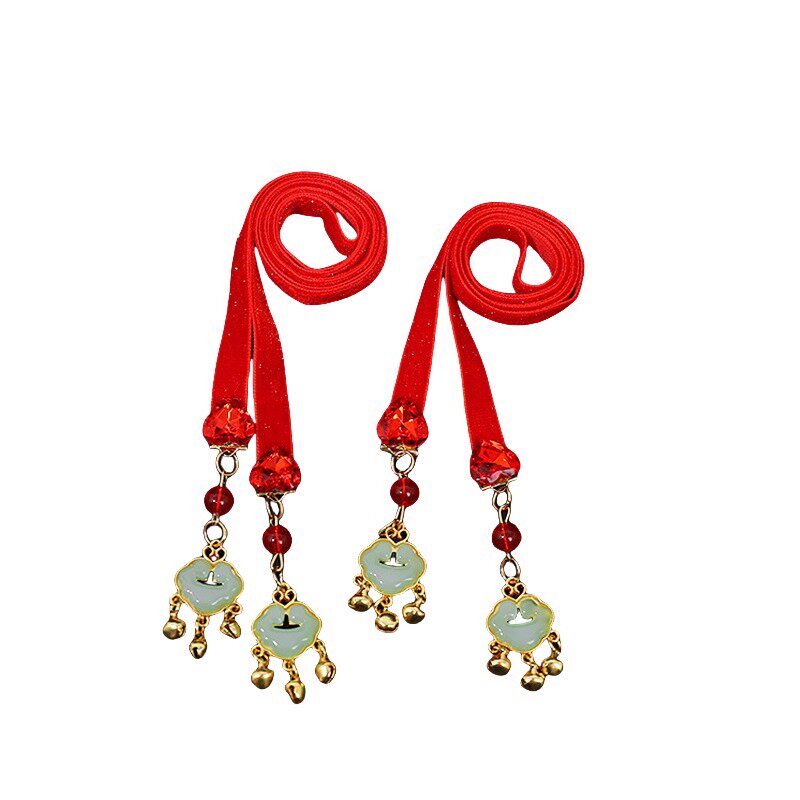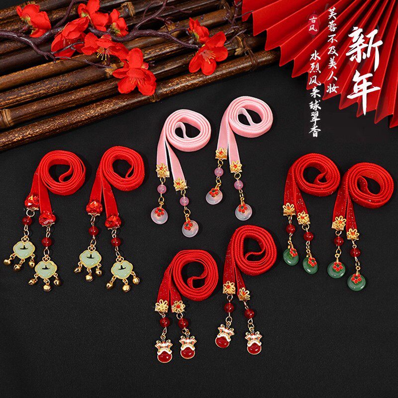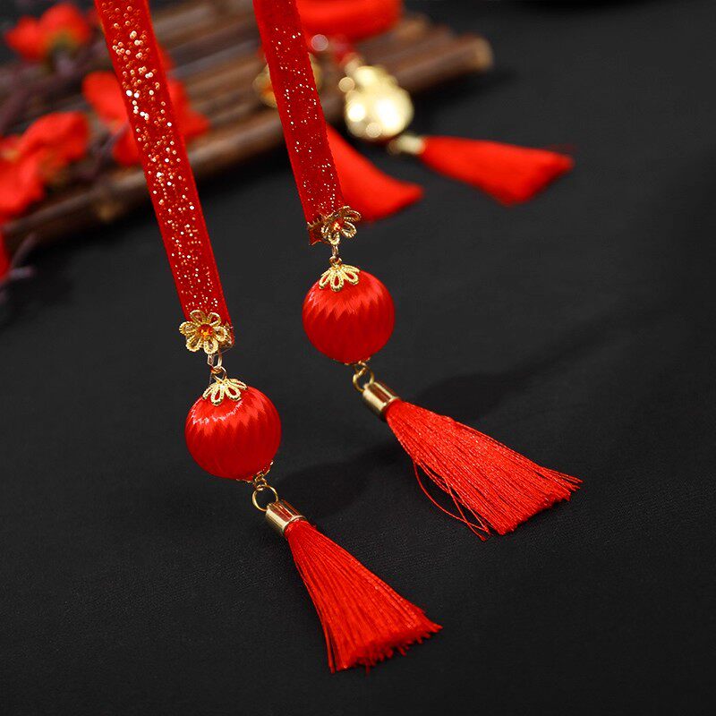 儿童汉服新年中国风头饰女童铃铛飘带小女孩编发头绳古风绑发发带