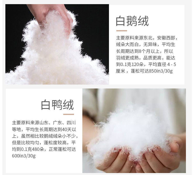 散装羽绒一斤装国标95白鹅绒被90白鸭绒服原料填充物大朵鹅吊吊绒