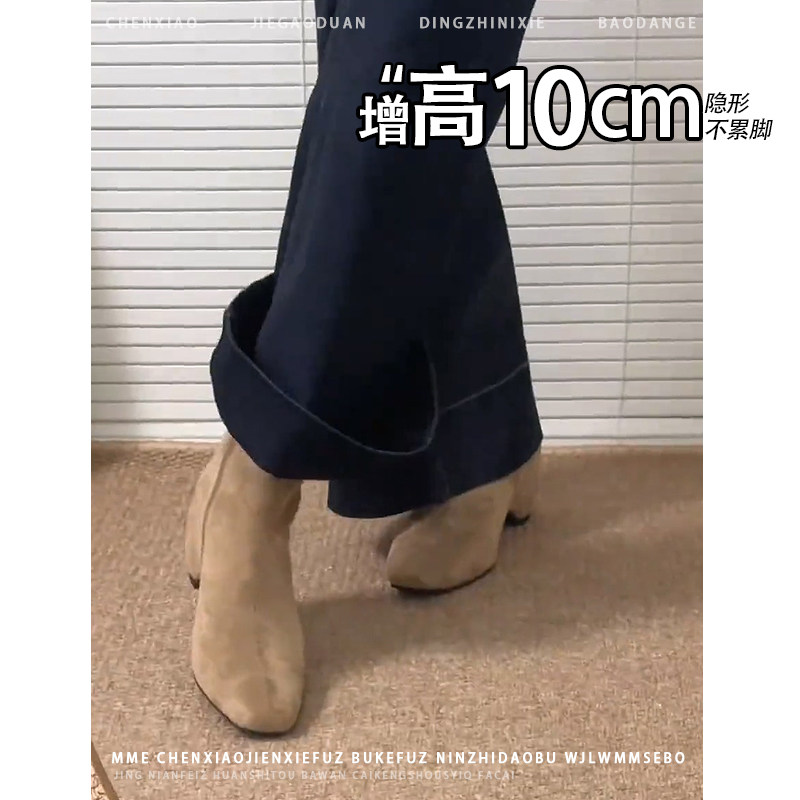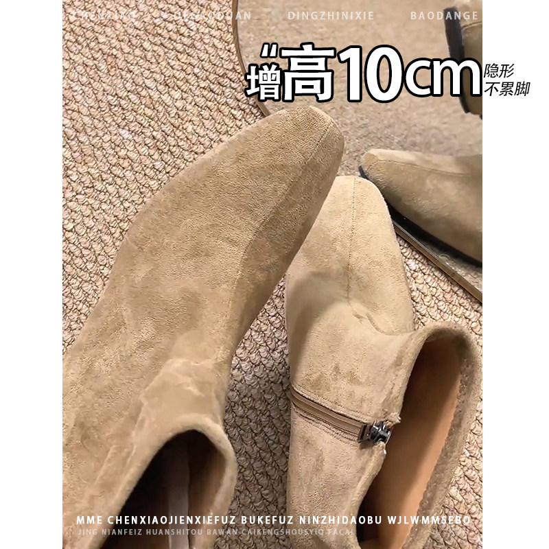 不累脚!小个子内增高10CM绒面瘦瘦靴女2025秋冬短靴侧拉链时装靴