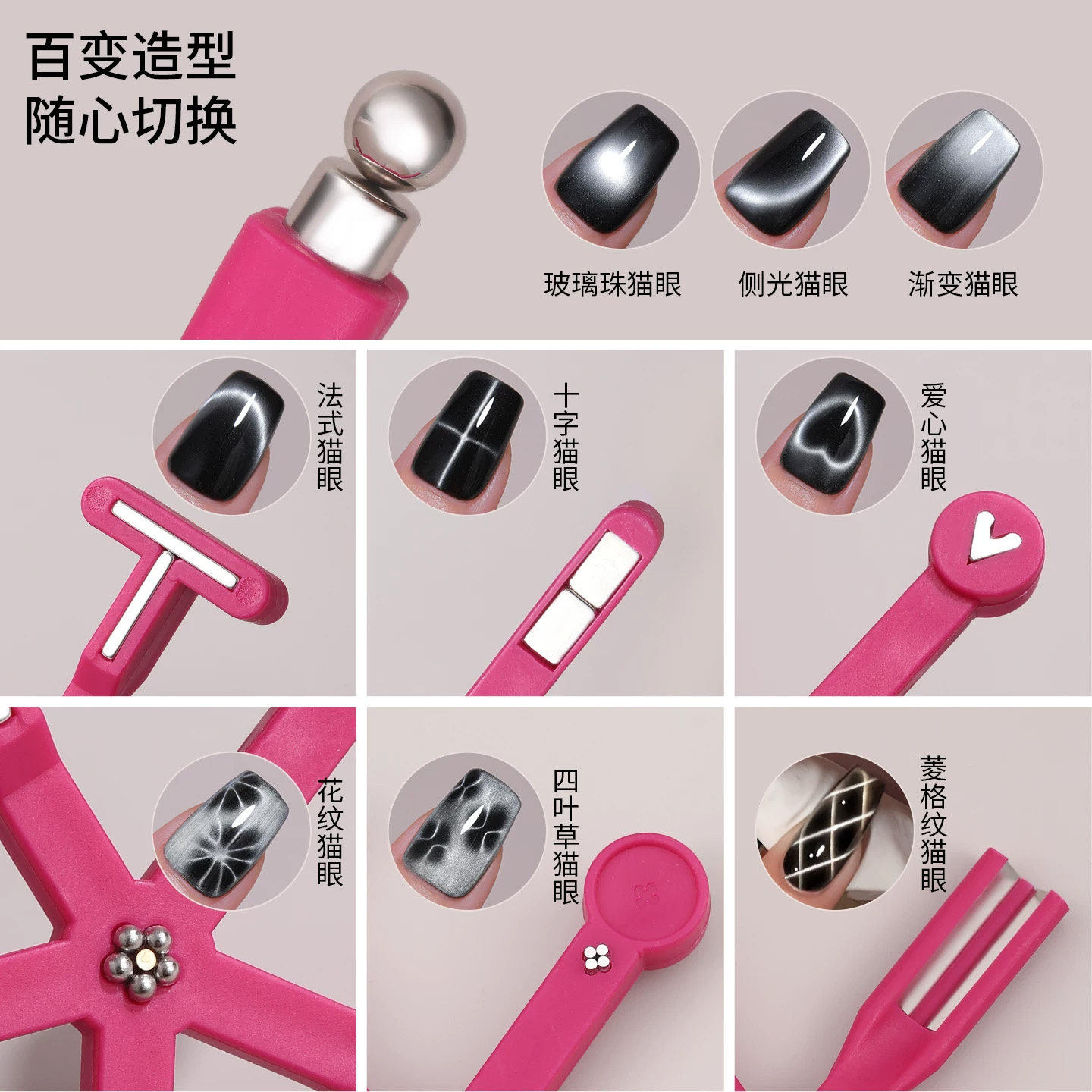 美甲八合一猫眼磁铁海星吸宽光猫眼胶辅助工具玻璃珠强磁强力法式