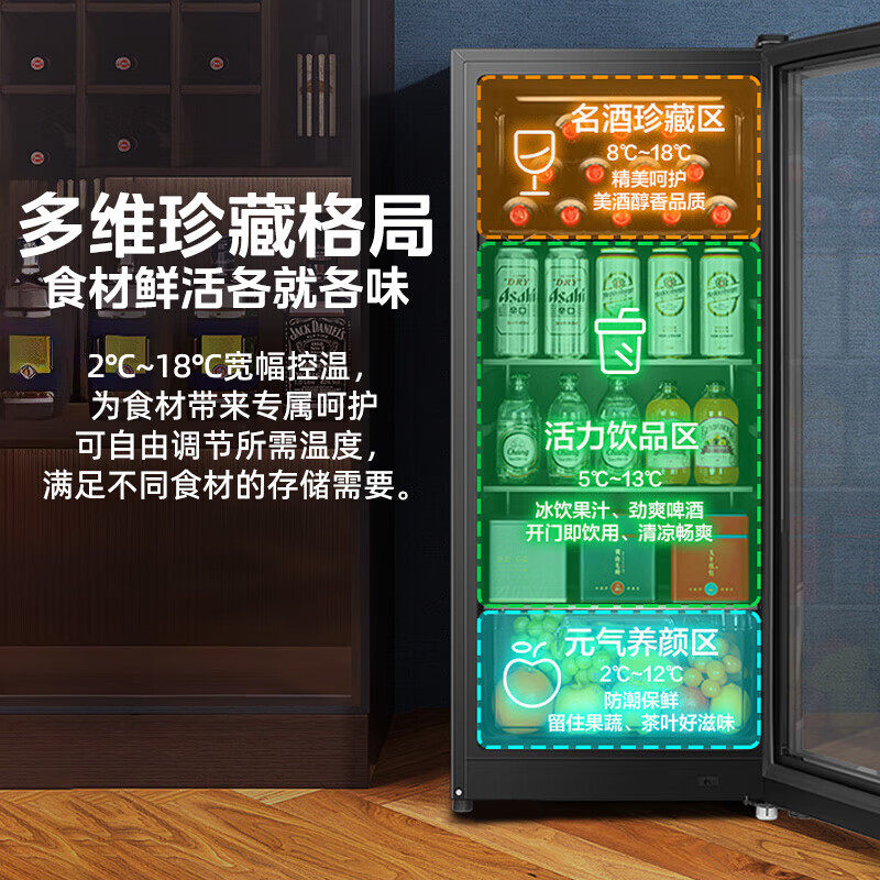 美的冰吧家用140L冷藏柜客厅茶叶饮料保鲜柜复古冰箱红酒茶叶柜