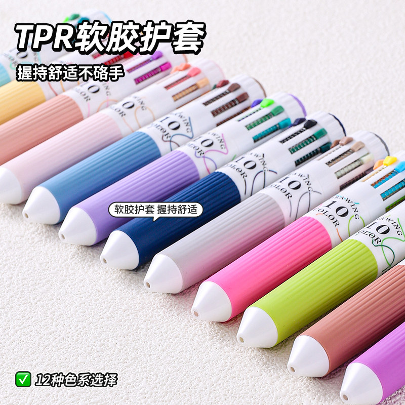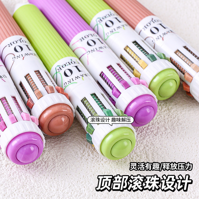 创意卡通多色签字笔可爱按压十色圆珠笔学生奖励实用礼品小奖品