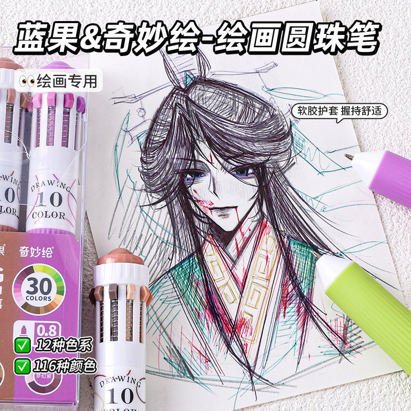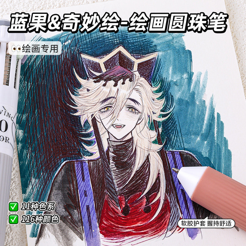 蓝果116色绘画圆珠笔多色按压式彩色多功能十色合一书写手账专用0.8mm可叠色高颜值学习标记学生摸鱼中性笔