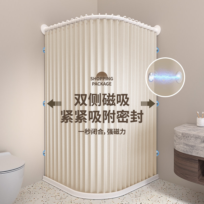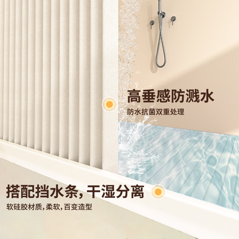 卫生间弧形折叠浴帘浴室免打孔防霉隔断帘高档淋浴干湿分离挡水帘