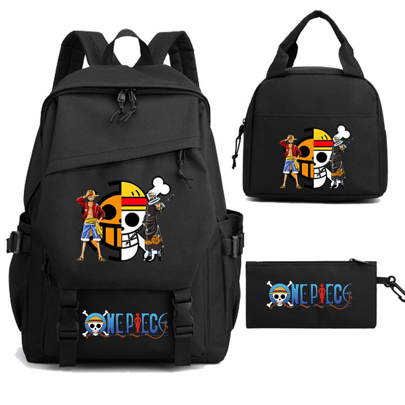 新海贼王路飞学生书包三件套游戏周边双肩背包大容量电脑饭盒笔袋