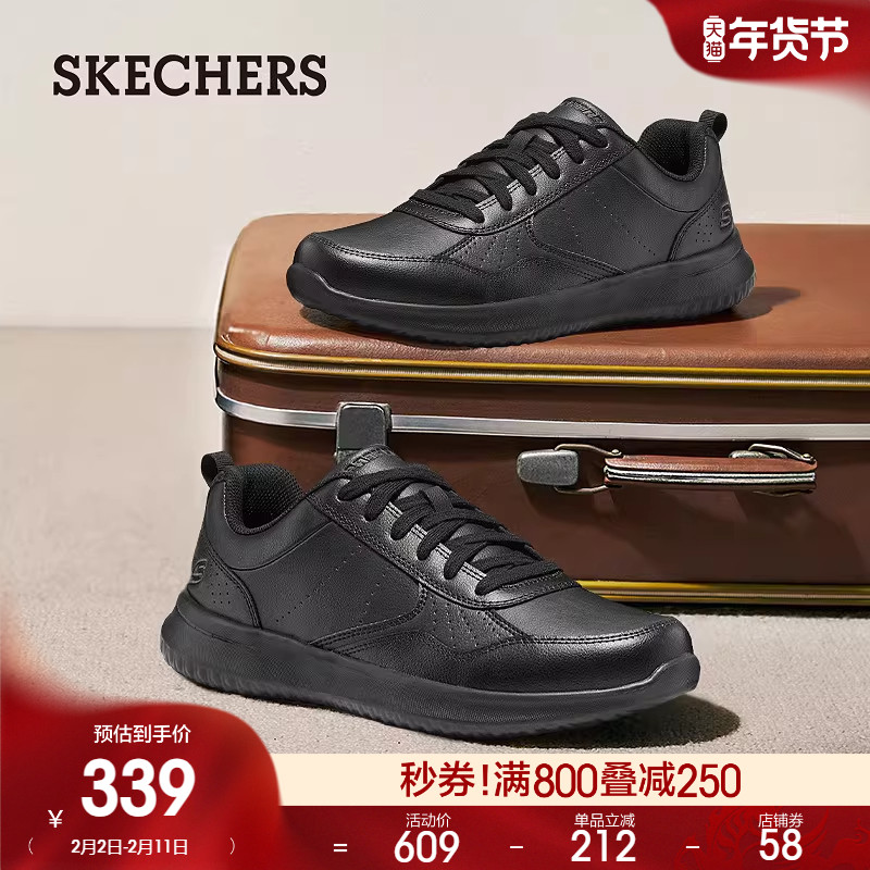 斯凯奇秋冬新款男子舒适休闲皮鞋商务鞋通勤鞋德比鞋软底上班板鞋
