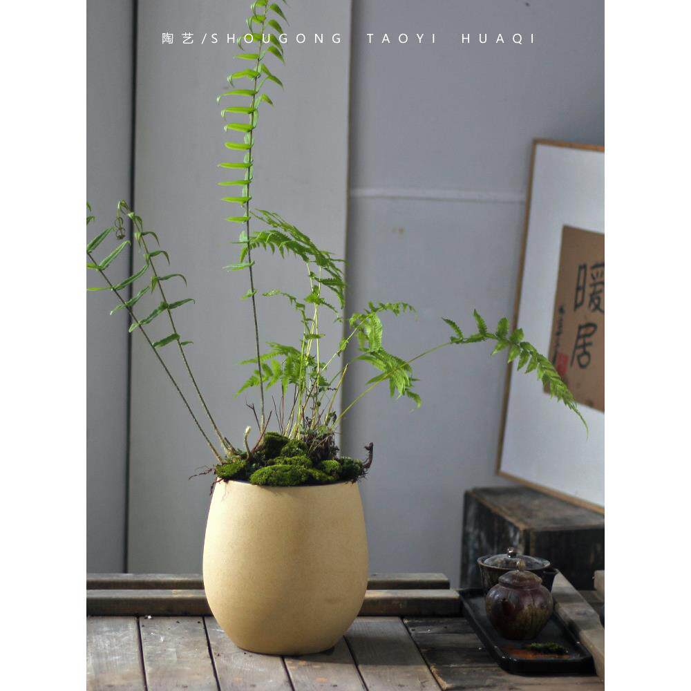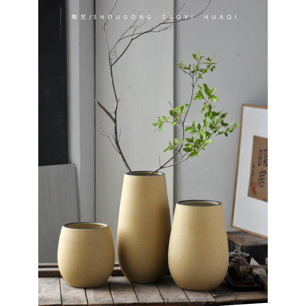 禅意民宿客厅插花器景德镇手工陶罐花盆摆件软装酒店花艺植物瓷瓶