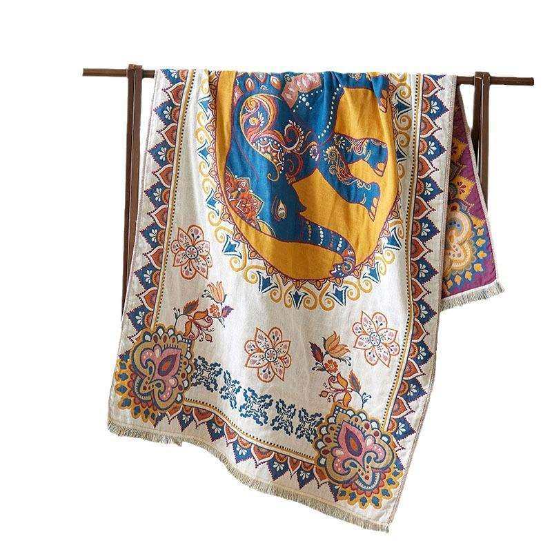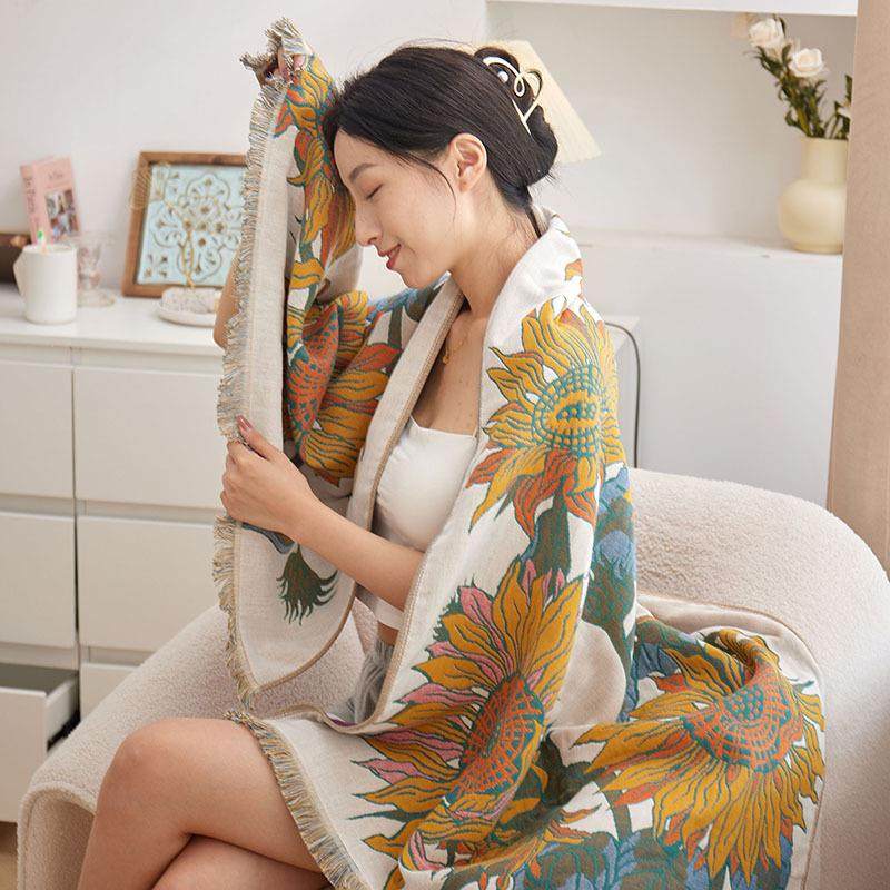 四层全棉纱布浴巾毛毯子沙发盖毯纯棉长绒棉多功能披肩毛巾被床毯
