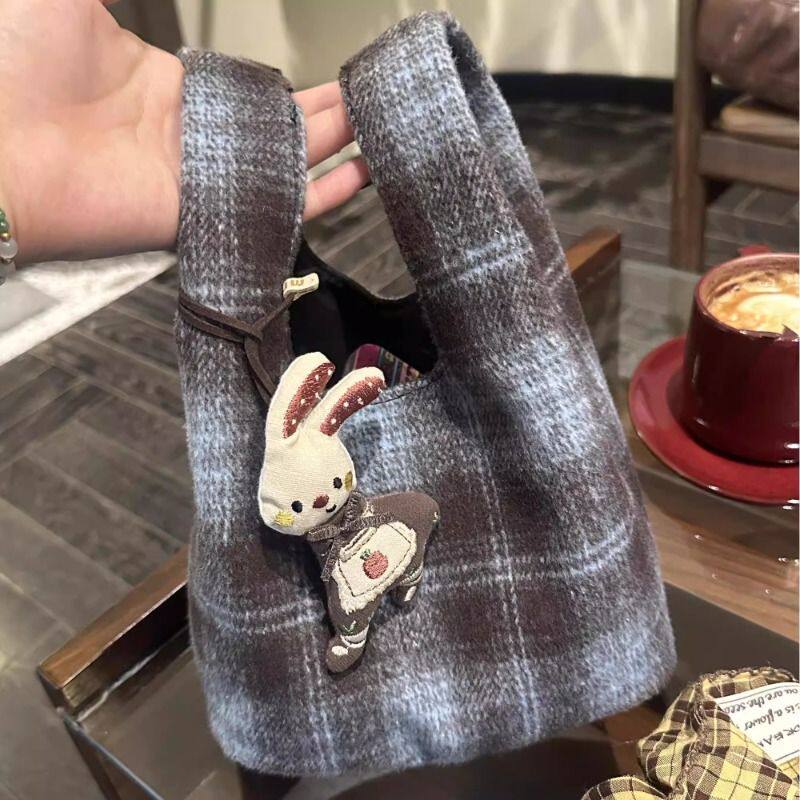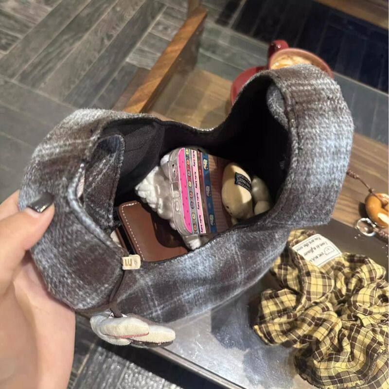 秋冬新款高颜值毛呢迷你手提包ins百搭手拎外出便携轻便手腕小包