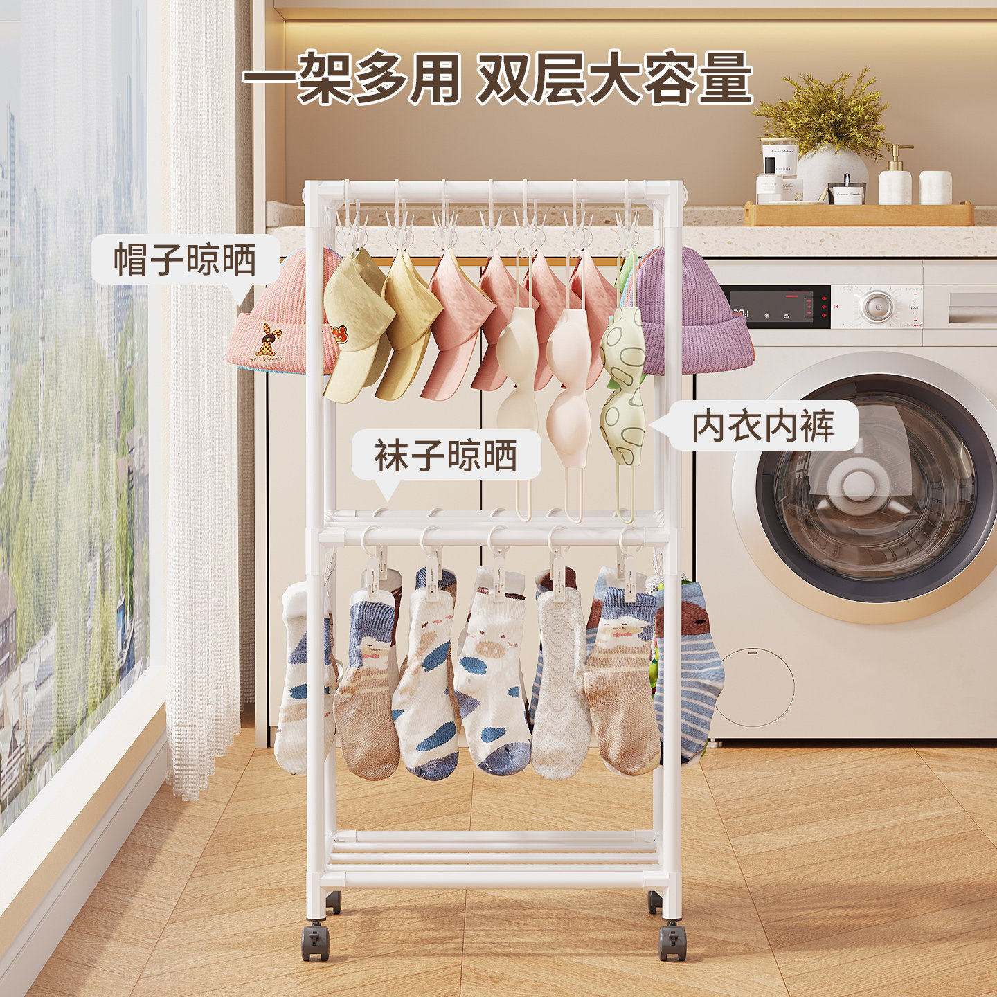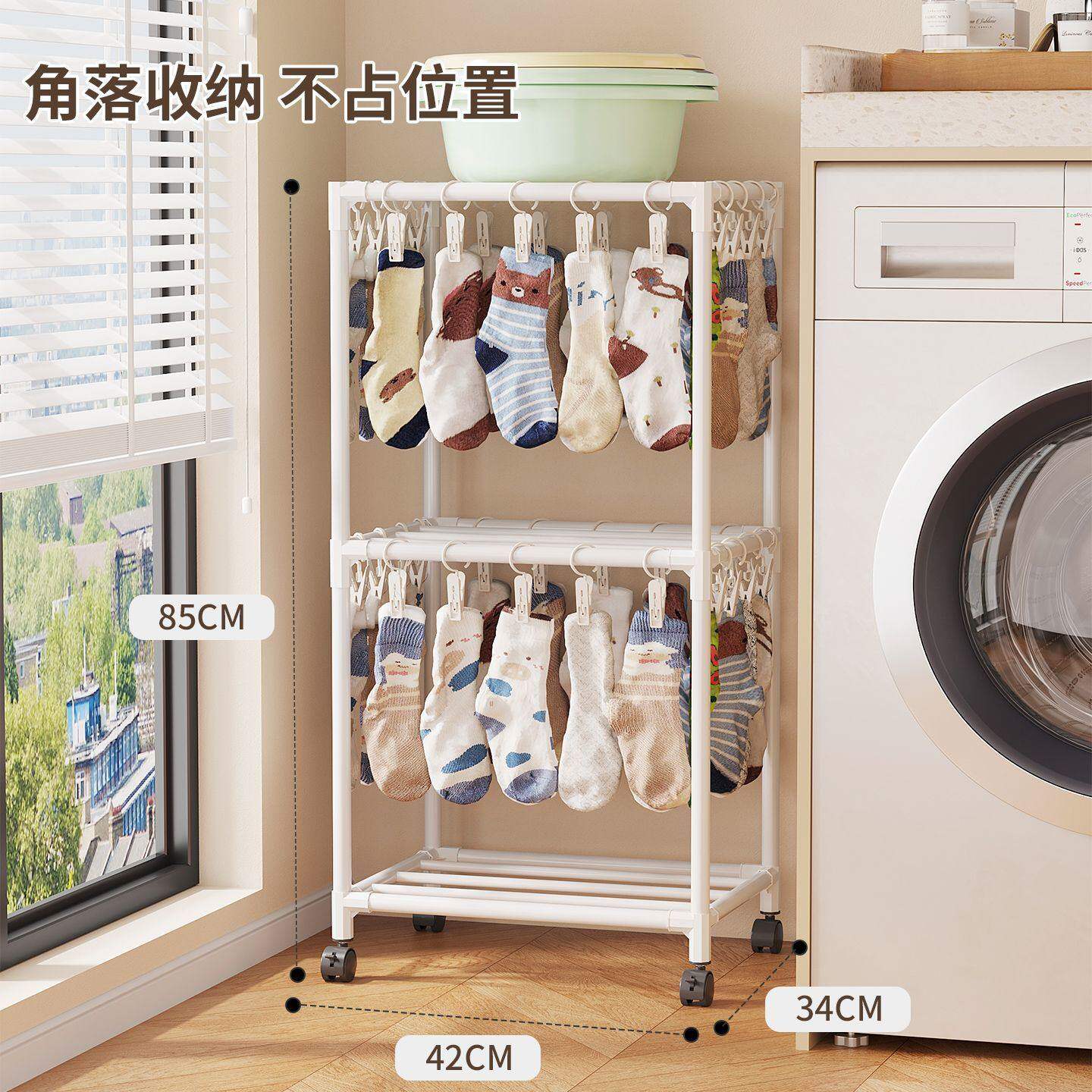 袜子收纳架子阳台落地晾衣架宝宝婴儿口水巾多个挂钩晾晒架占地小