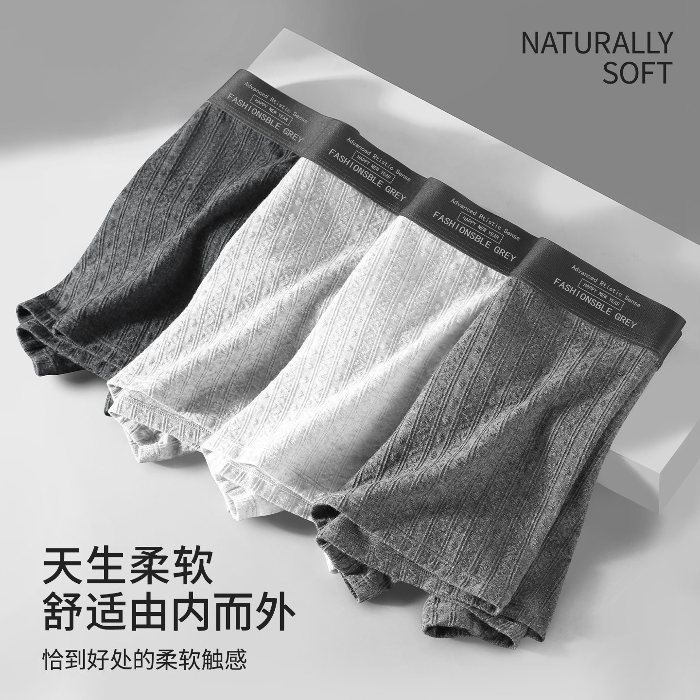 松山棉店蚕柔莫代尔男士内裤透气男生短裤青少年纯棉大码平角裤衩