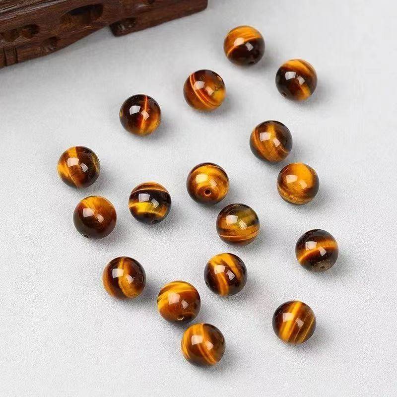 天然黄虎眼石散珠虎睛石diy水晶珠子手工编织饰品配件散珠子配饰